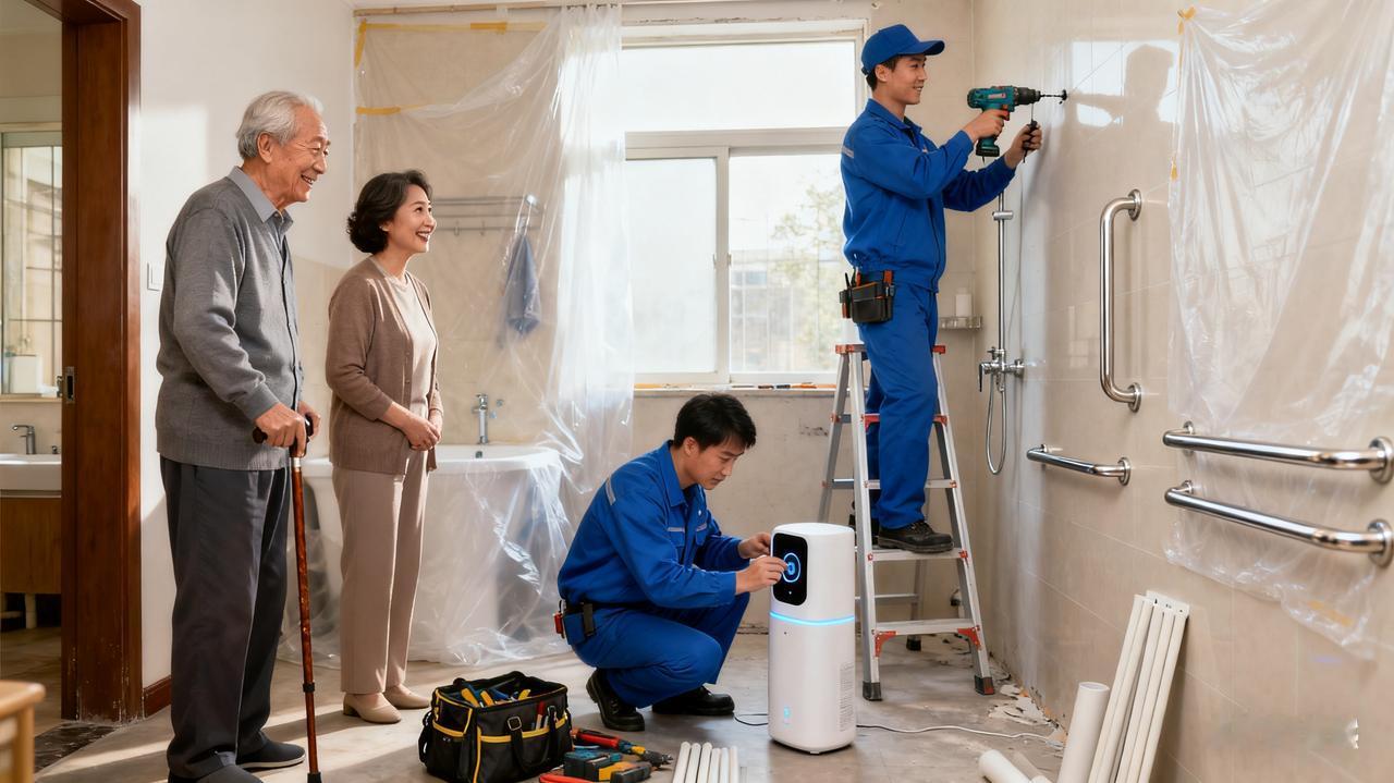 智慧+适老,双轨发力 养老服务走进精准时代。 “点一下平板就能约上门理发,浴室装了扶手连洗澡都踏实多了!”近日,多地社区养老服务中心与居家适老化改造项目同步落地,让银发群体直观感受到养老服务的“精准升级”。 在XX社区养老服务中心,工作人员正指导72岁的张阿姨用智能平板预约助餐服务——界面大字标识、语音提示的设计,让老人轻松完成操作。该中心本月已累计提供智能服务预约超200次,覆盖助餐、保洁等8类需求。 居家端的适老化改造同样提速:工人在居民李爷爷家浴室加装防滑扶手、紧急呼叫器,同步调试的智能监测设备可实时联动社区服务站。据民政部门数据,今年本地已完成300户特殊困难老人家庭的适老化改造,加装智能设备1200余件。 “既要用数字化拉近距离,也要靠硬件改造守住安全底线。”业内人士表示,当前养老服务正从“普惠覆盖”转向“精准适配”,社区智慧平台与居家适老改造的结合,正让银发群体的生活“便捷”与“安全”兼得。