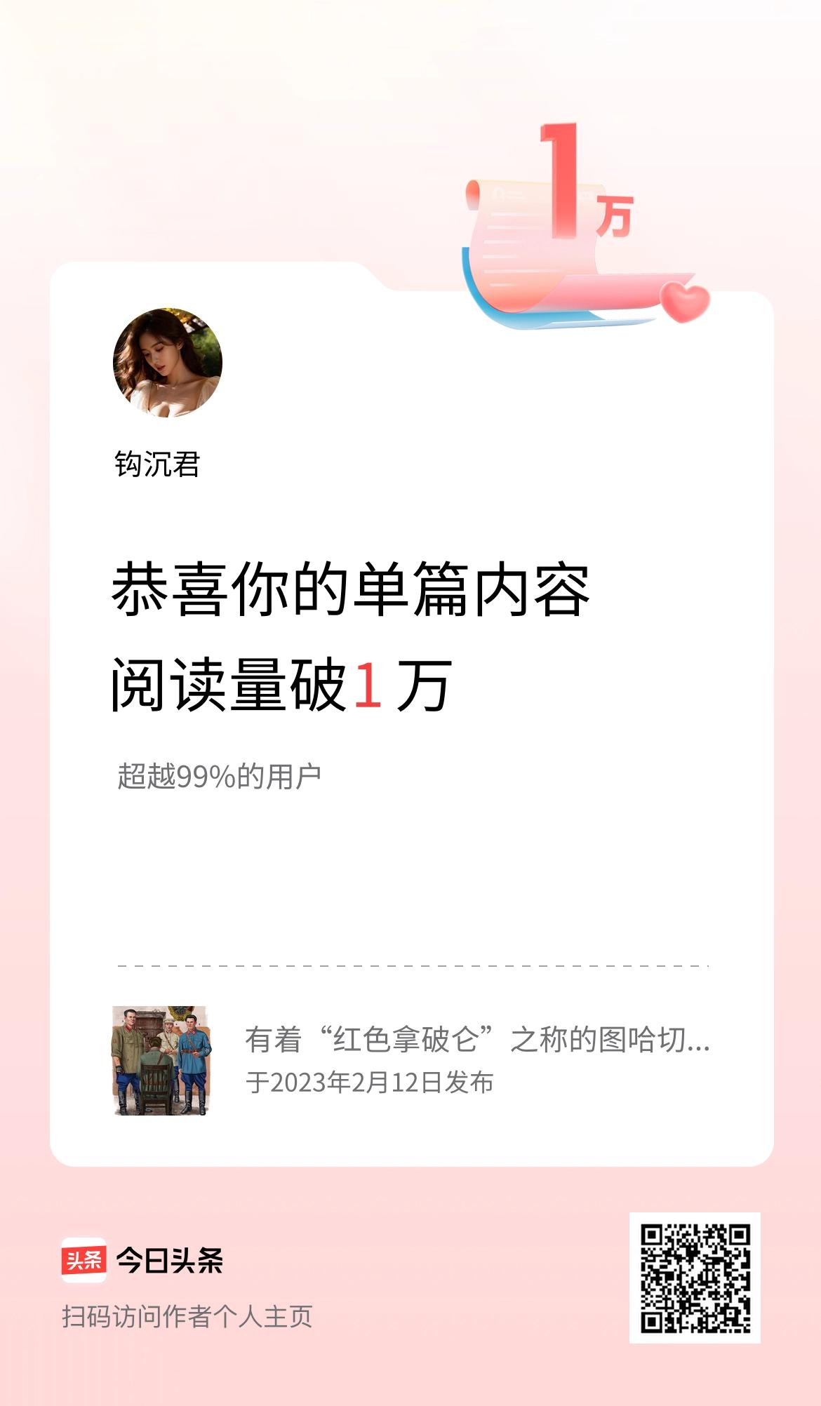单篇内容获得阅读量破1万啦!