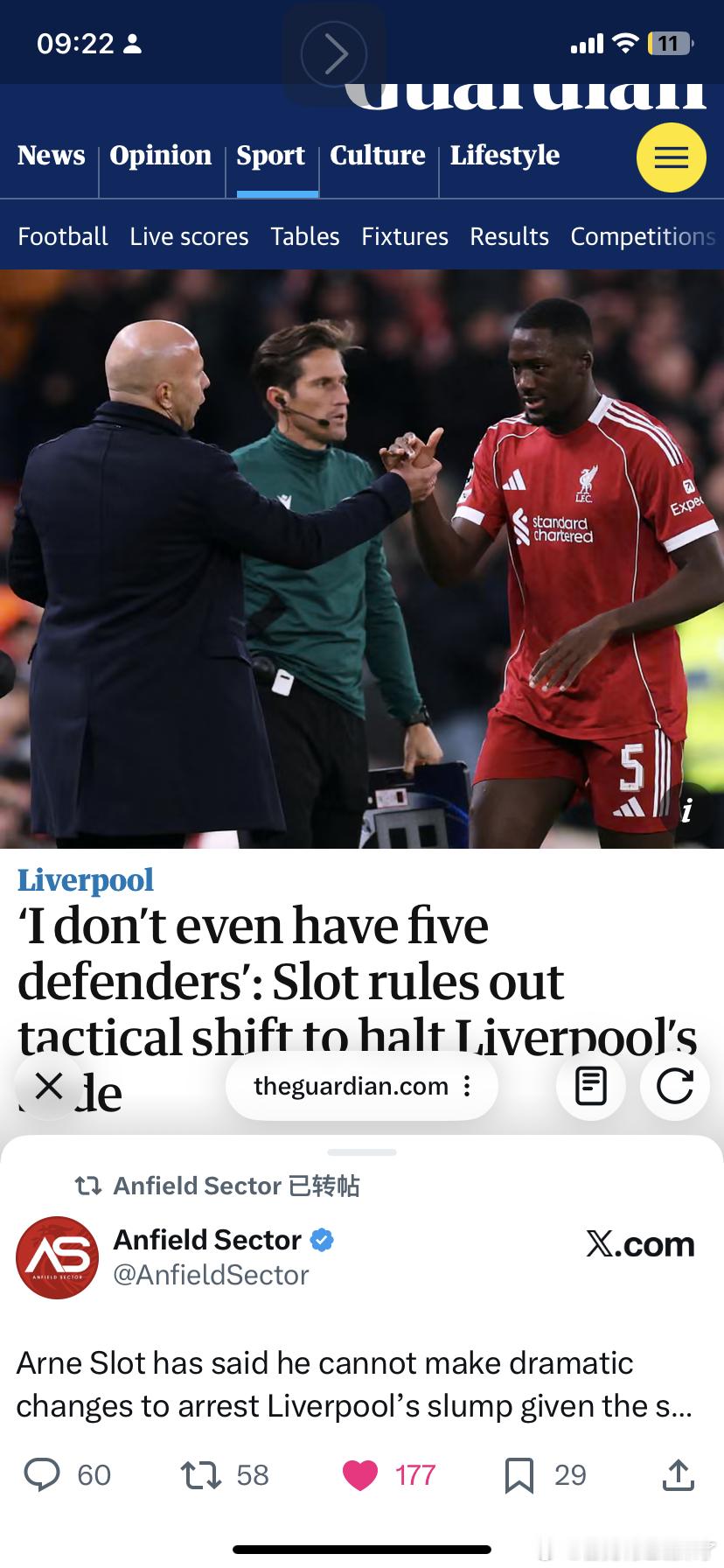 斯洛特表示,由于球队阵容适配其战术体系且训练时间有限,他无法通过剧烈调整来遏制利物浦队的颓势。这位主帅在周日英超客战西汉姆联前正面临日益沉重的压力——他执掌球队期间已创下俱乐部71年来最差战绩纪录。近日外界不断呼吁他应将状态低迷的科纳特和萨拉赫移出首发,或通过彻底改变战术风格来止住滑坡。但这位主帅坚称,鉴于后防线伤病缠身且22天内要连续进行7场比赛导致训练时间匮乏,进行彻底改革并非解决之道,甚至根本不具备可操作性。"问题是'我是否应该彻底改变'?"斯洛特反问道,"虽然不清楚各位的具体想法,但举例来说,如果想改打五后卫阵型就会遇到问题——我甚至连五名后卫都凑不齐。"我们当前的战术体系最适合现有球员。他们可能整个职业生涯都在踢这个体系,而我们的训练时间又极其有限。在每隔两天就有比赛的情况下,要彻底改变我们的足球理念几乎是不可能的。虽然由于球员缺阵,我们被迫排出了许多不同阵容——这并非我愿——但我们已经持续轮换了整个球队阵容。曼城上赛季曾遭遇13场仅1胜的困境,但本赛季已重新成为争冠队伍。"(曼城的例子)确实具有参考价值,因为他们拥有实力,我们同样具备。摆脱困境的最佳途径,就是整支球队和我作为主帅重新激发球员的最佳状态,带领我们重返胜利轨道。倘若缺乏实力底蕴,我们将面临巨大危机。但我相信球队具备这样的实力,现在需要做的就是重新激活它们。"