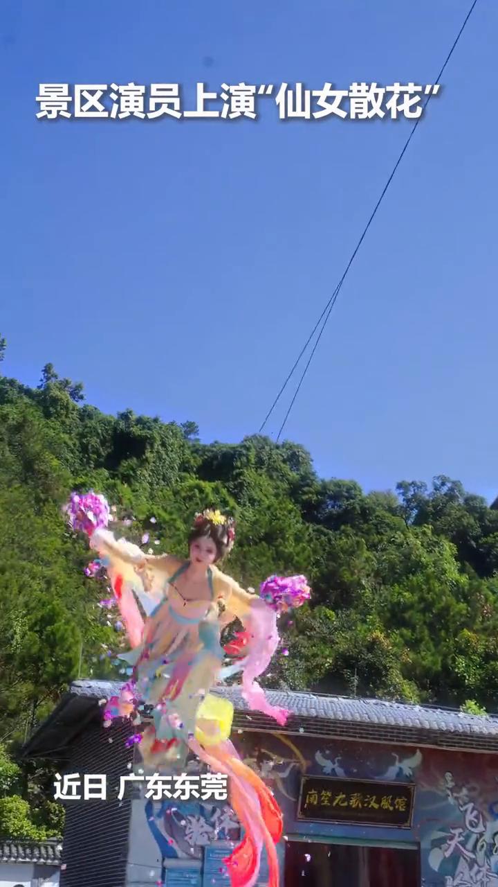 景区演员上演"仙女散花"。 近日广东东莞。