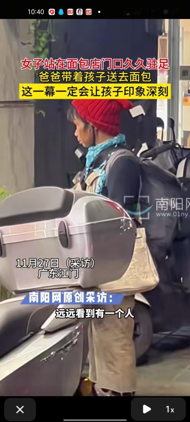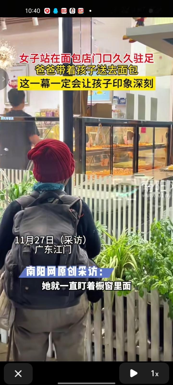 11月25日,广东江门。男子接儿子放学去吃饭,途中遇到老人望着面包店一动不动,男子心想老人应该是饿了,就去面包店买些现有的面包给她吃了。事后男子想到,这种场景在自己小时候和妈妈去市场买东西也是同样的情况