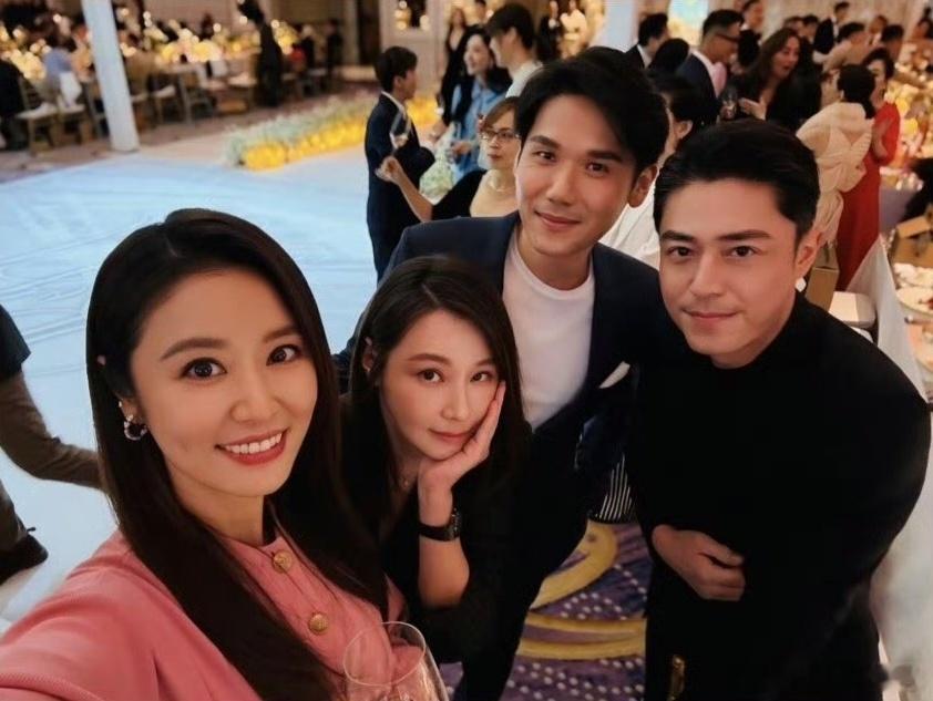 陈怡蓉夫妇与林心如霍建华合照 林心如霍建华参加邱泽许玮甯婚礼,图1中间的是陈怡蓉和她老公。