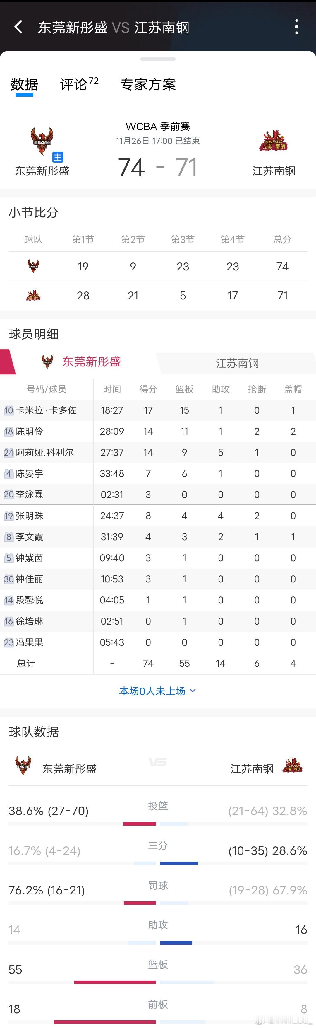 广东女篮广东女篮2025-2026赛季wcba联赛 20251124-202511262025-2026WCBA联赛——季前赛A1组:东莞新彤盛第一轮:1124 东莞新彤盛48-44 浙江稠州银行第二轮:1125 东莞新彤盛99-68 新疆天山第三轮:1126 东莞新彤盛74-71 江苏南钢广东女篮季前赛三连胜,30号揭幕战见,期待冠军戒指!!!!