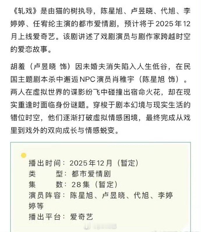 陈星旭卢昱晓《轧戏》开启播前招商,预计12月播出,这部剧好快啊 今年上半年刚杀青