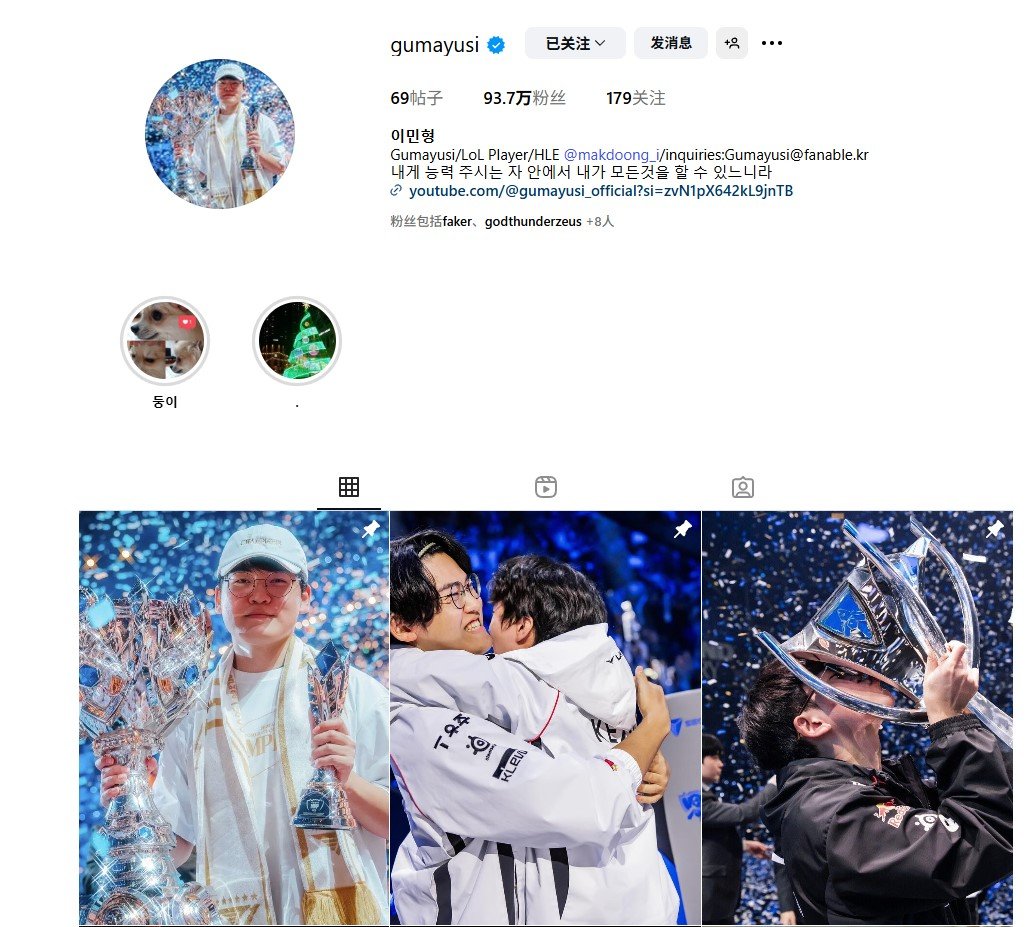 T1的夺冠功臣Gumayusi现已转会至HLE战队,Gumayusi与T1管理层之间的不愉快在圈内众所周知,尽管他表现稳定,却长期面临轮换压力、俱乐部对粉丝开卡车抹黑Guma的行为毫无作为。不过,即便在这样的背景下,世界赛上的 Gumayusi 依旧打出了FMVP级别的表现,帮助队伍成功拿下三连冠!今日有细心粉丝发现,Gumayusi的个人INS账号已正式取关了T1官方账号,象征着双方关系的彻底切割。从此以后,他就是HLE的Guma了,T1已成过去式。希望未来Gumayusi和T1都能各自安好,在新的赛季继续追逐荣耀!Gumayusi取关T1官方账号Faker和Caps挑战不眨眼英雄联盟S15