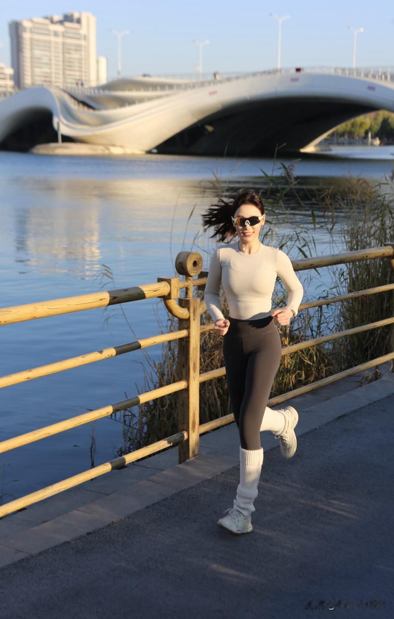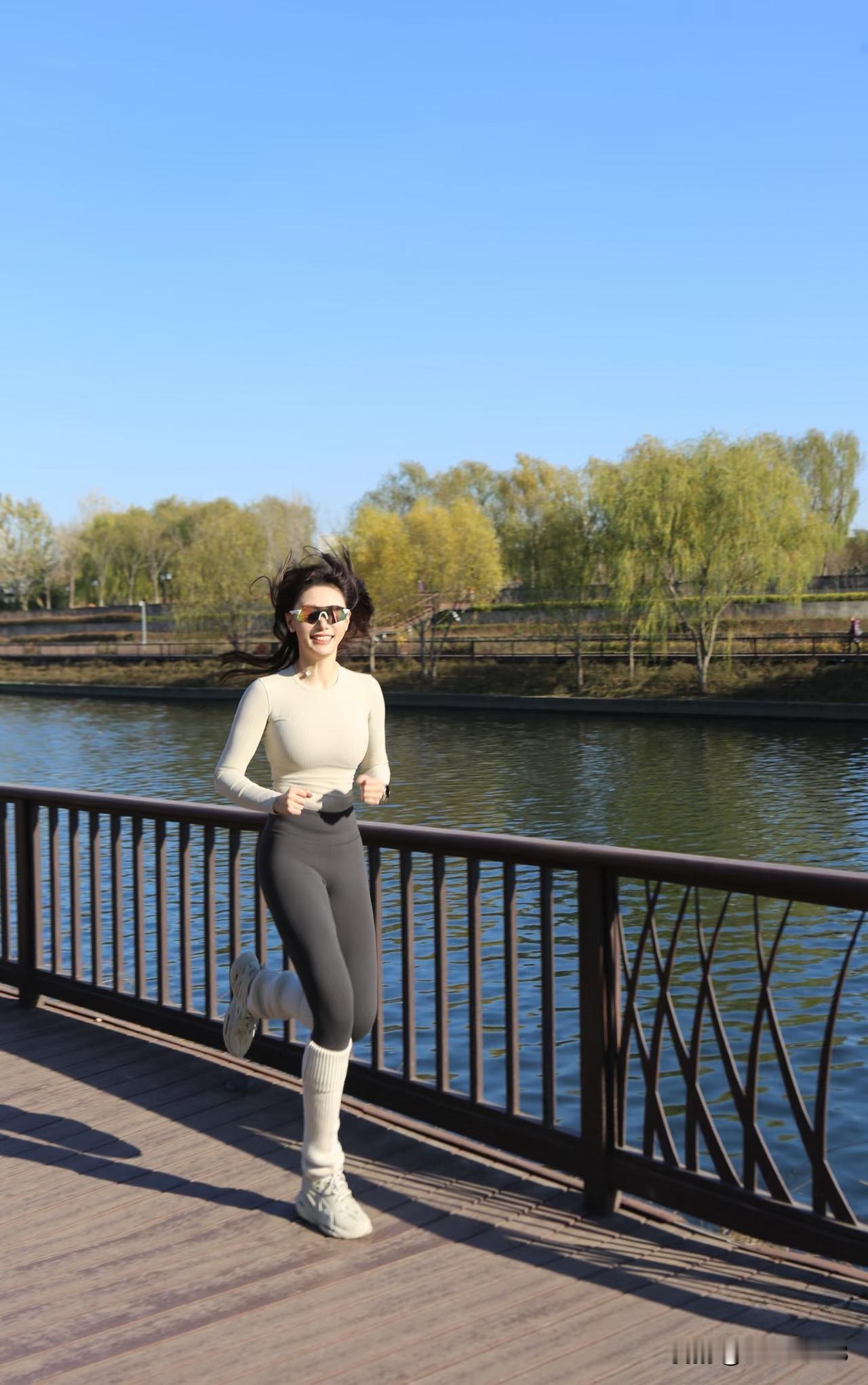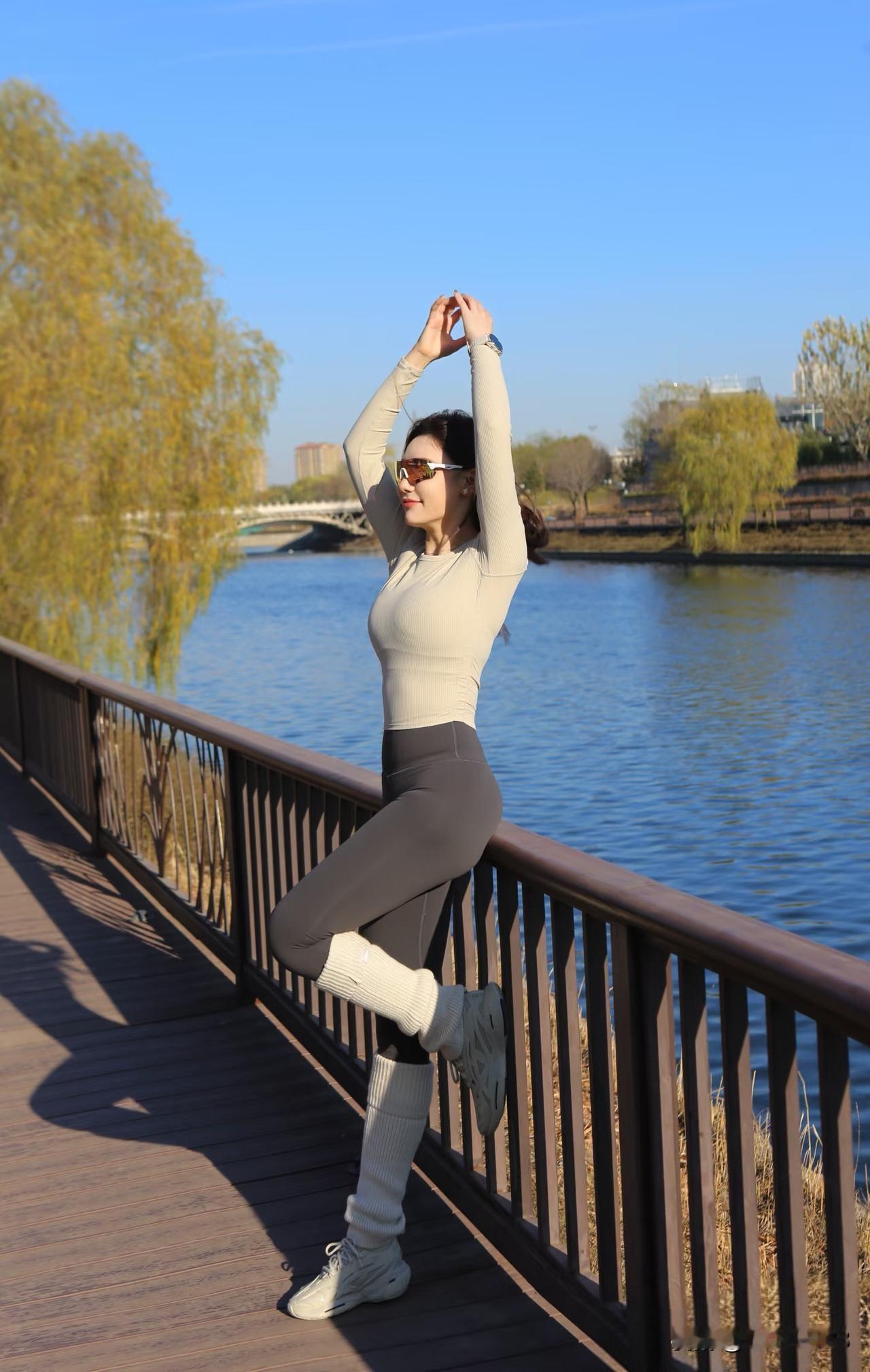 在湖边伸展,享受阳光和新鲜空气!🌞💪