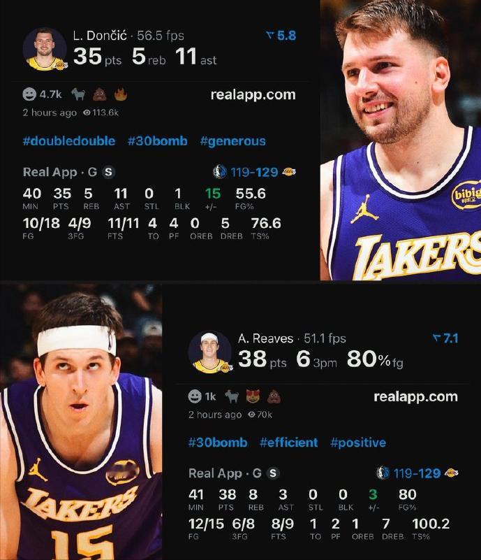 东契奇:“能和里夫斯一起打球真是太好了,很高兴能成为他的队友。” 记者:“这是你第一次给里夫斯称赞。” 东契奇:“是的,那也是最后一次了。” 🤣 对阵独行侠这场球,东契奇拿到35分5板11助,里夫斯手感火热,拿到38分8板3助,两人合砍73分13篮板14助攻,基本保持了湖人全场进攻不断电。 詹姆斯回来之后,很多人都在担忧詹姆斯会抢戏,影响东契奇和里夫斯的发挥和数据,结果现在反倒是越打越好,詹姆斯干脆不沾球权了,给这哥俩舞台随便表演。 这么多打几场球,里夫斯这赛季就要进全明星了。