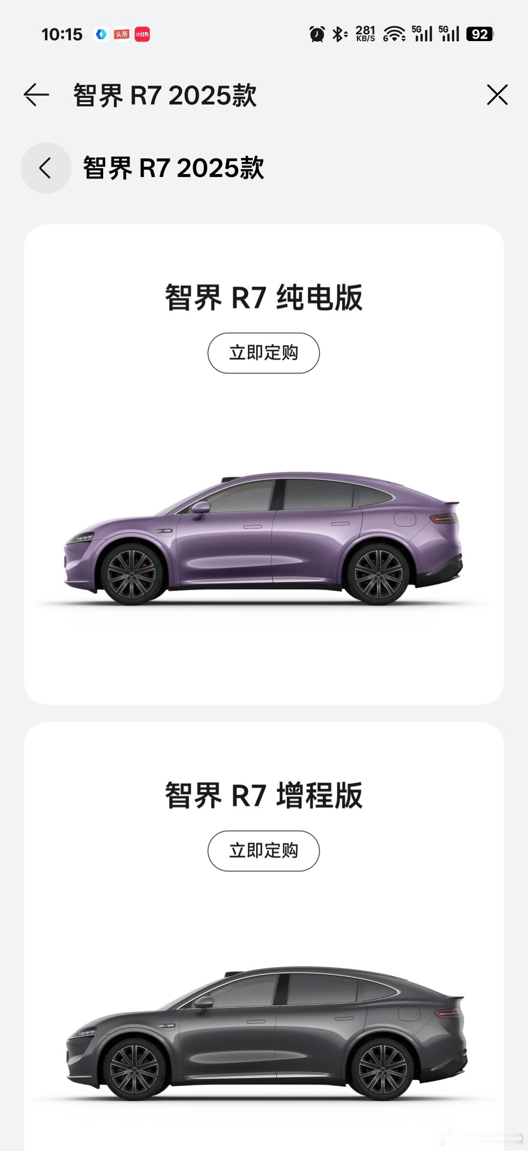 今天给家人看鸿蒙智行的车智界R7和S7可以选择2025款现车对比我去年的价格,同配置便宜3W感觉还挺香,还有麂皮顶 电吸门想省钱上鸿蒙智行的可以看看