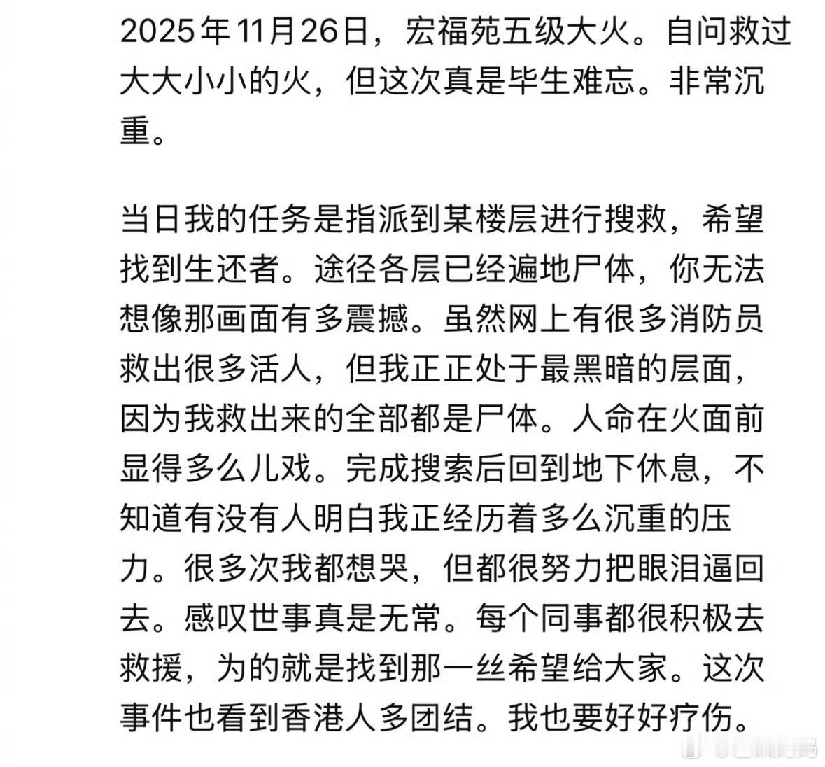 香港大埔火灾已致128人遇难香港消防员:“我也要好好疗伤”