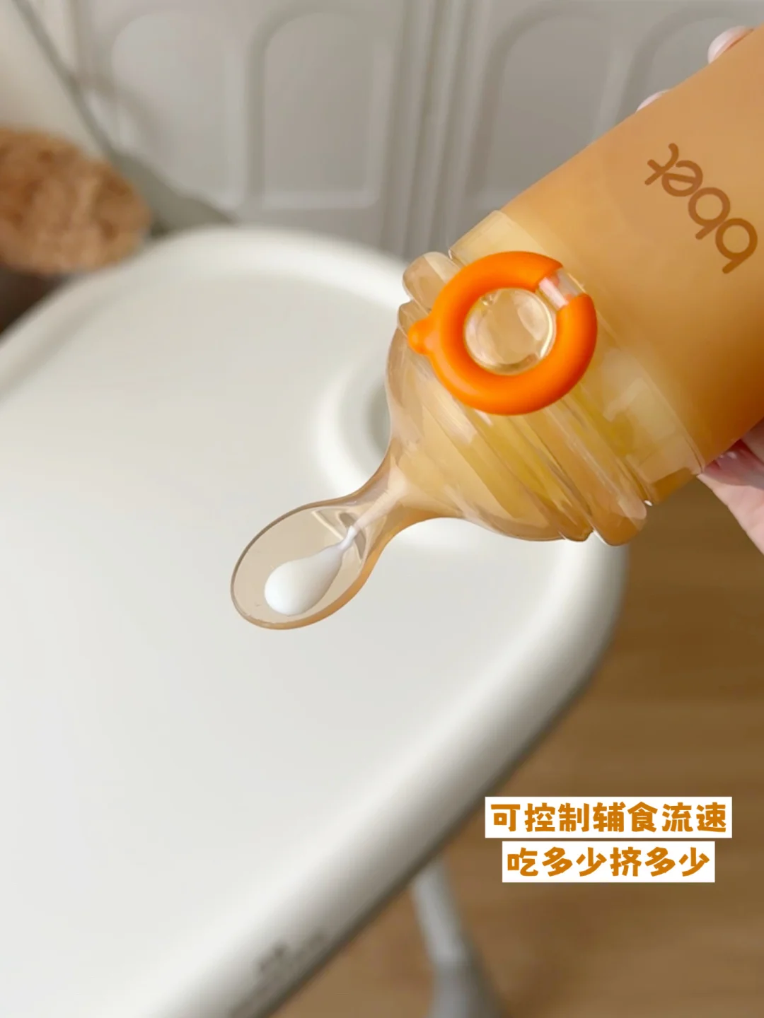 我妈之前总抱怨传统勺子控制不好量,现在她边抱娃边喂米糊,超级顺手!而且瓶身圆润好抓握,也方便宝宝自己拿着锻炼自主进食。