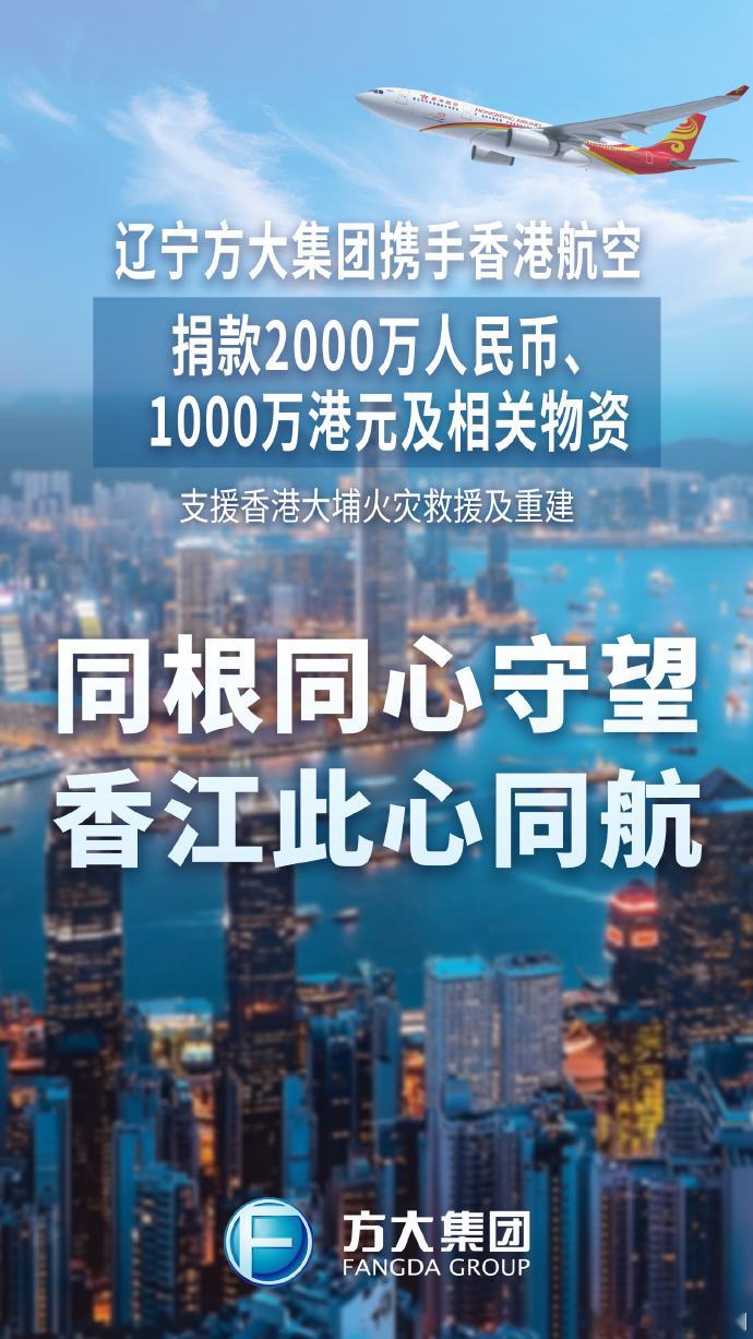 辽宁方大集团及旗下香港航空驰援香港大埔火灾。捐款2000万人民币、1000万港元及各种物资支援火灾救援及灾后重建。以前说辽宁方大都是重工业大家不好支持,现在方大航空板块拥有海南航空系香港航空等一些列航空公司啦。 香港举行悼念活动