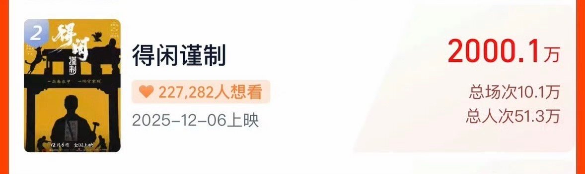 听听温特怎么说《得闲谨制》预售仅27小时,票房突破2000万。首日排片超过5万