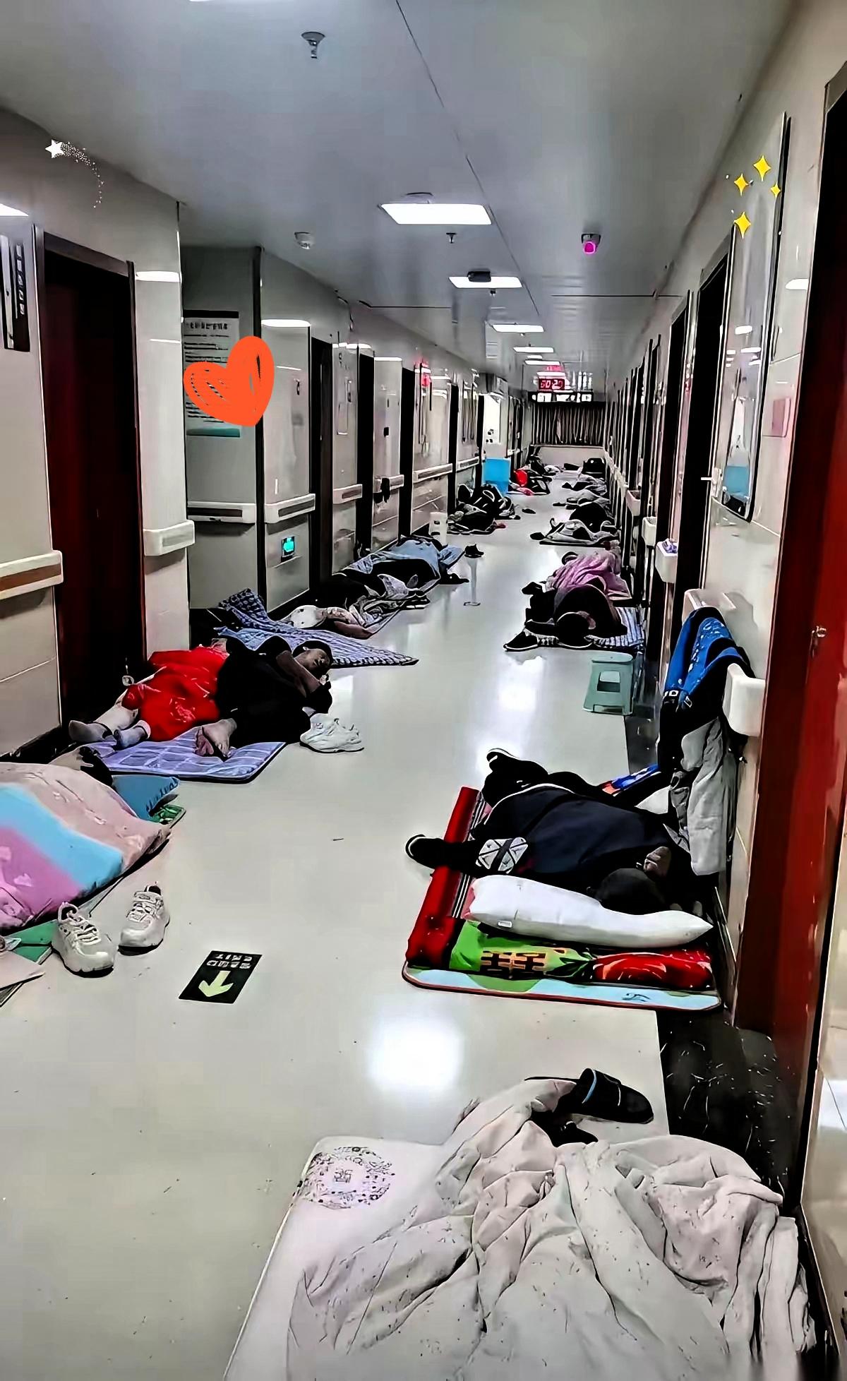 凌晨三点的医院走廊,乌压压睡满了家属,这一幕看着心酸却暖心! 院长一句“让他们睡,早上收拾好就行”,直接戳中了无数人的心窝。比起那些按规定赶人、租折叠床赚钱的医院,这份体谅简直是雪中送炭。 家属们不是不想住宾馆,而是想就近守着亲人,听着呼吸声才安心,更想把钱省下来给病人治病、买营养品。院长的慈悲心,懂的是家属的煎熬与不易。 但暖心之余也得考虑实际:走廊全是地铺,可能占用急救通道、增加感染风险。其实可以在室外搭遮阳棚,既不影响就医秩序,又能满足家属陪护需求。 医院的温度从来不在装修多豪华,而在是否懂病人和家属的难。你觉得医院该如何平衡人文关怀和就医秩序?