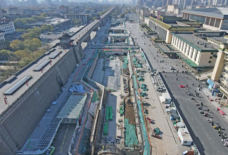 西安市护城河及环城公园综合改造工程火车站段项目进度条刷新,预计26年1月整体完工... 西安火车站的这段护城河,曾是不少人心中的遗憾。1952年,西安火车站扩建,受制于当时施工条件与技术水平,这一段护城河被迫退入地下成为暗流。护城河为城市建设让出空间,成为当时的无奈之举。 年初,西安市护城河及环城公园综合改造工程火车站段项目启动建设,旨在解决火车站段护城河暗涵破损、淤泥沉积、汛期易溢流及城市风貌老旧等问题,打造新的城市门户形象。沉睡了数十年的这段护城河,终于迎来新生。 该项目工程规模中主要包括:尚勤门~尚德门段河道加固改造859.07m(敞开覆盖段395.64m),新建检查井3座;新建分水阀井3座,新建景观水系连通管控制阀井1座,北门弯道段新建补水井2座、水系连通管出口改造2处等.... 工程完成后,西安护城河将实现地上整体贯通,一条跃动的绿波将环绕古城墙流淌;会形成4处景观水面,供大家欣赏。 目前,河道综合改造工程已基本完成。下层河道封闭工作已在汛前提前25天完成,现场正全力推进广场石材铺装施工,计划于2026年1月底前整体完工。 不久的将来,工程完工后,游客走出西安火车站,就能看见“城墙映碧水”的古城美景。”
