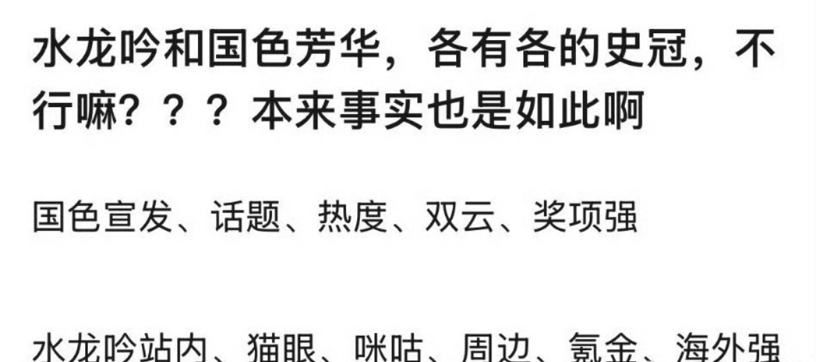 这个其实有道理。国色芳华和水龙吟各有各的史冠。两部剧都很好,大家一起夸啊。