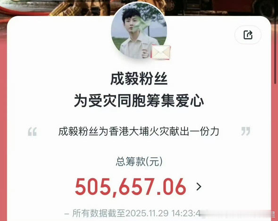 成毅粉丝捐款超过50万元成毅粉丝捐款超过50万成毅以个人名义捐款100w,粉丝捐款50w。粉随正主、明星的正能量带动作用具象化了