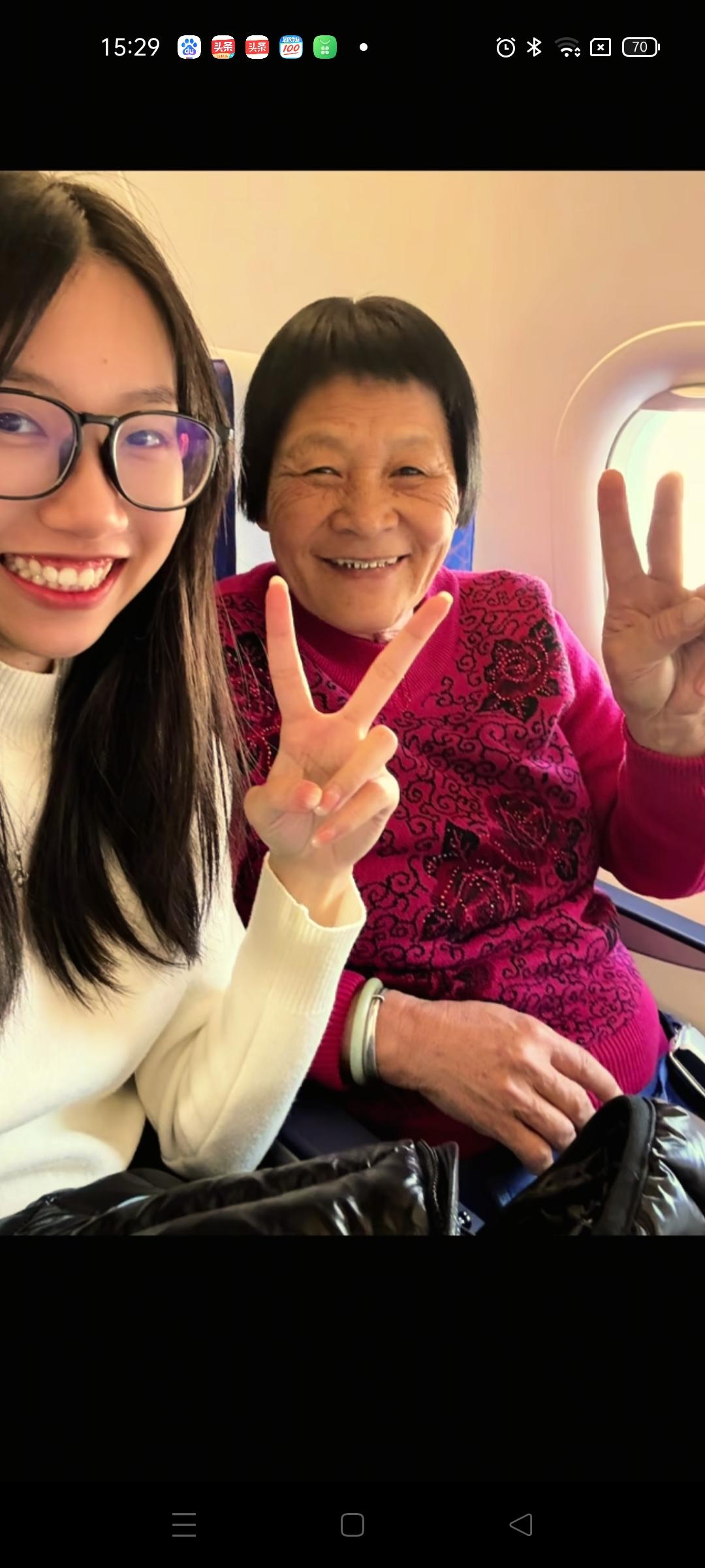 叶锐聪的奶奶和佳姐一起乘坐飞机飞往四川去看叶锐聪了 ,奶奶身穿一件红色的毛衣,满脸笑容 , 显得格外精神 ,魏聪回归家庭之后 ,奶奶心里的一块大石头也落地了 ,从此一家人团团圆圆, 妈妈也不需要在外面奔波寻找孩子了 ,也是姐姐第二次去往四川看望自己的弟弟 ,第一次是姐姐亲自乘飞机把弟弟接回来的 ,这就是血缘亲情的力量 。