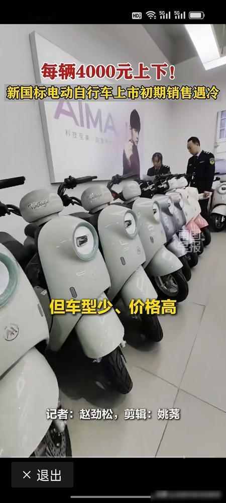 新国标电动自行车4000元,安全系数提升了,但是比原来贵,上市销售遇冷。有记者探