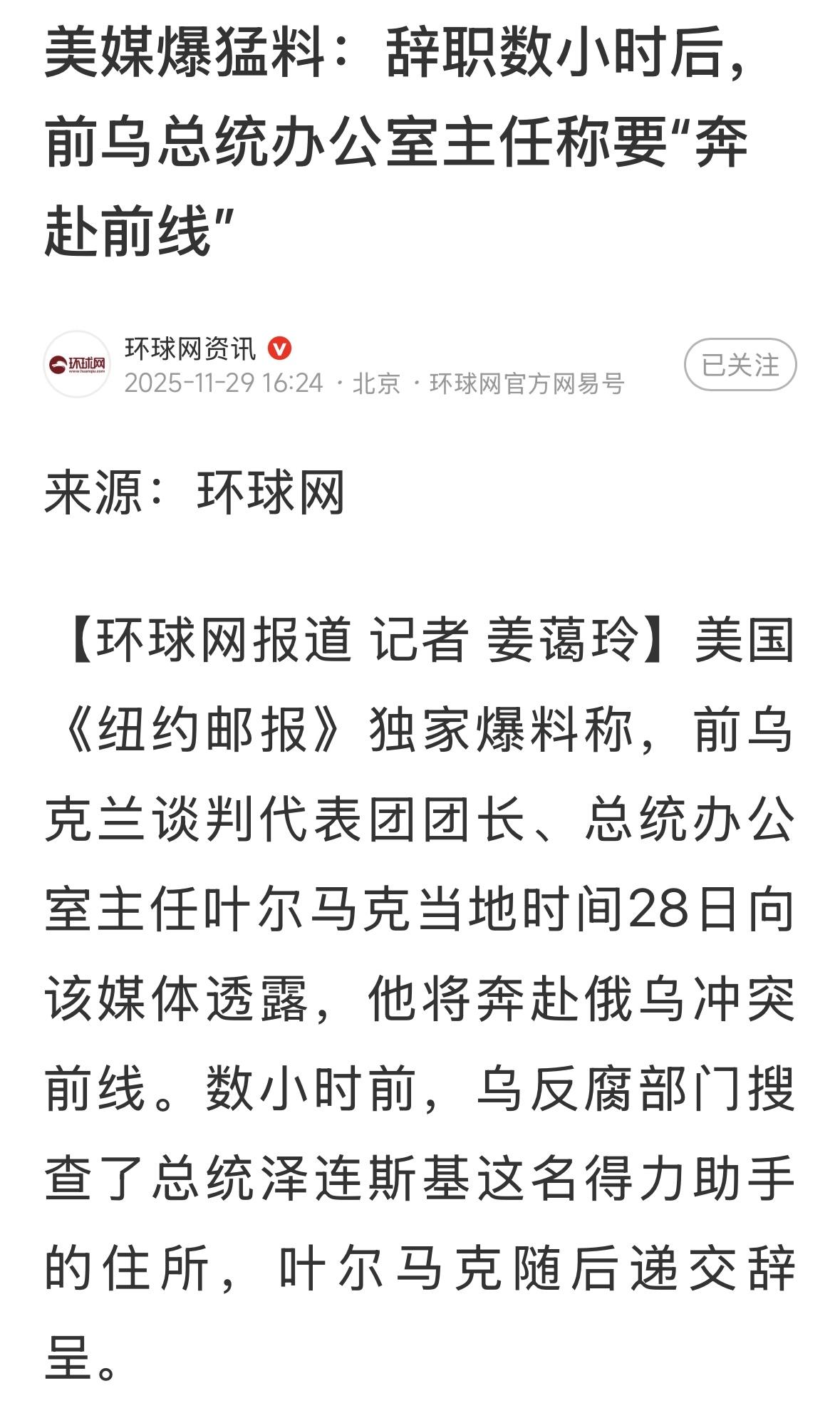 看来啊,泽连斯基办公厅主任叶尔马克是个好样的!对于卷入腐败案相关指控,叶尔马克多次表态坚称自己是无辜的。11月28日早些时候,乌国家反腐败局和反腐败专门检察官办公室对叶尔马克住所进行了搜查,暂未公布搜查结果。叶尔马克在社交媒体发文证实此事,说他本人“全力协助调查”。