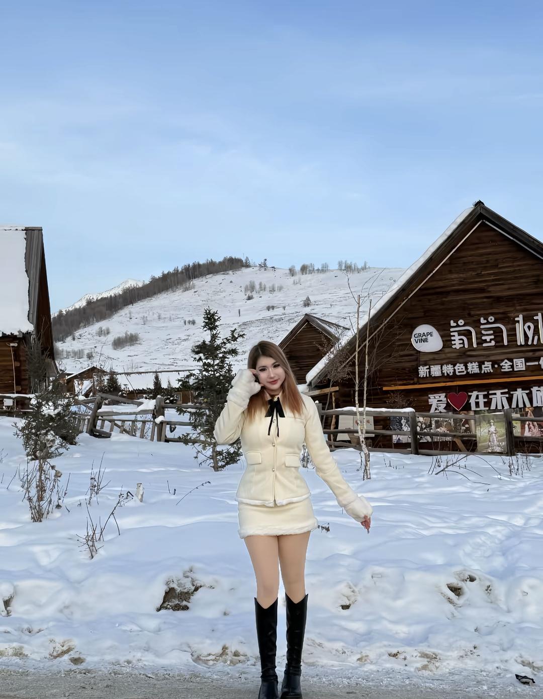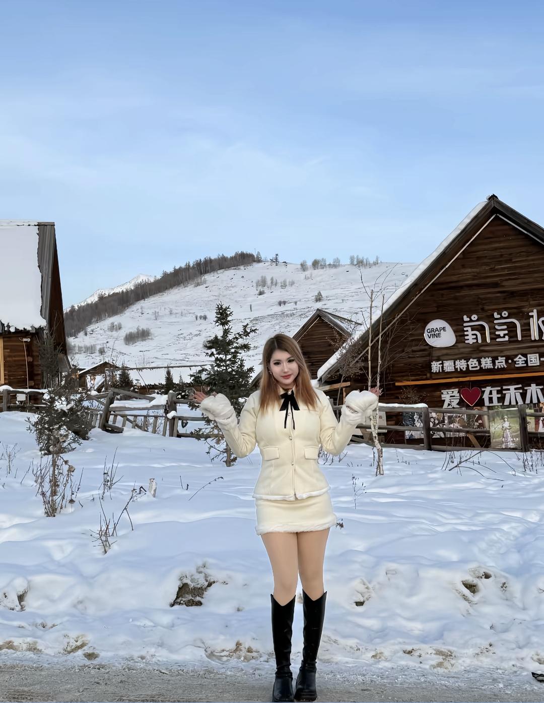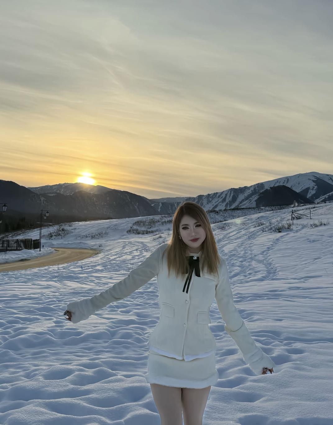 冬天穿得暖和,在雪地里拍照真开心!