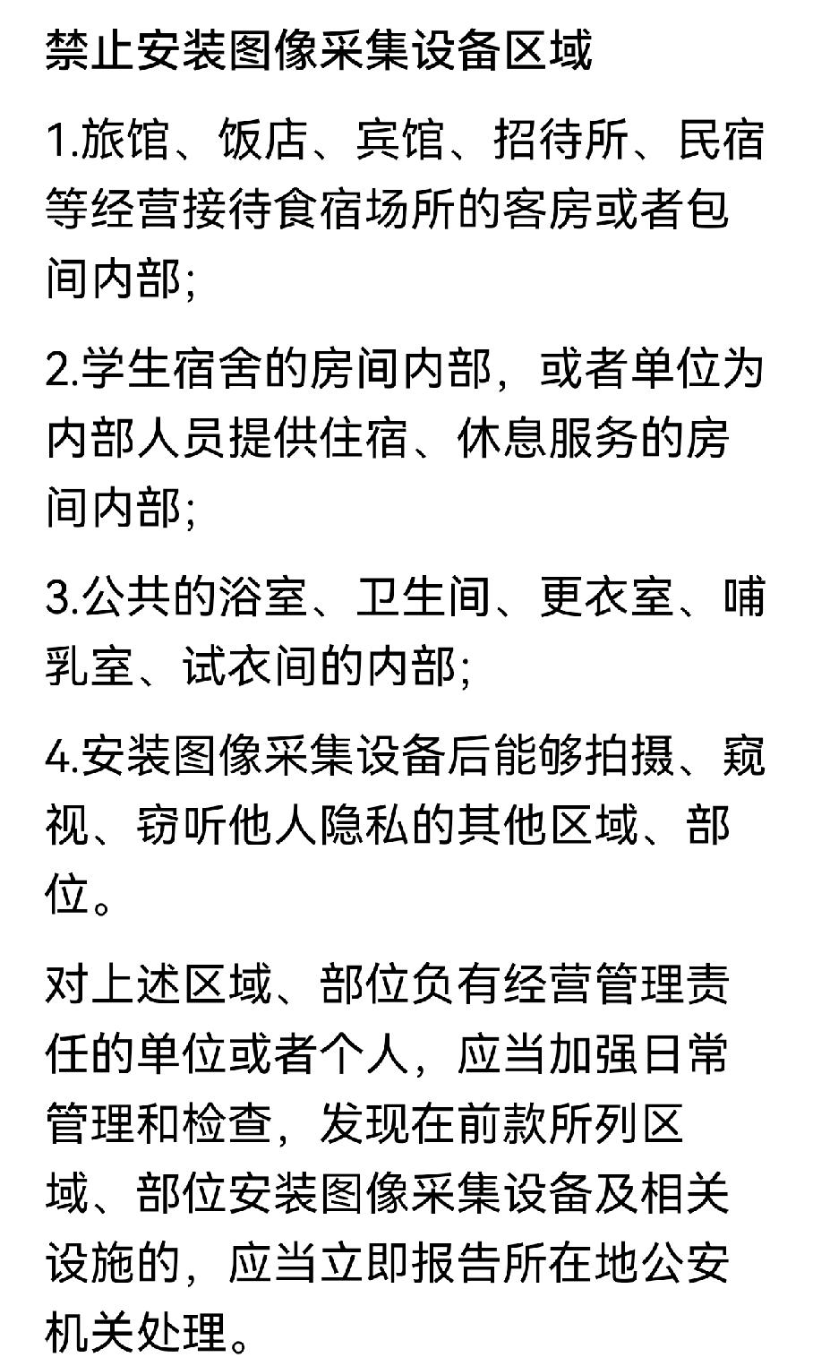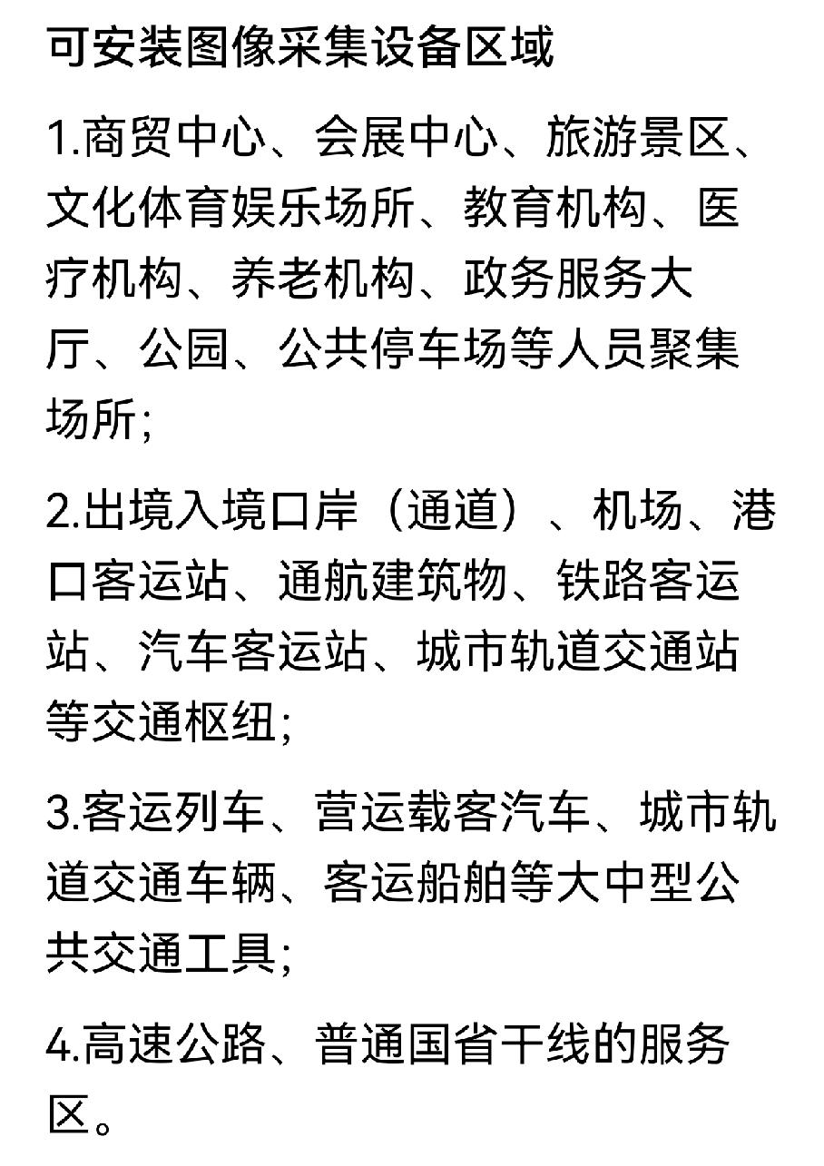 事关个人隐私。天津人注意!这项新规你要了解!明年1月1日就要落地施行了。赶快了解一下。今天,《天津市公共安全视频图像信息系统管理办法》发布,明确可安装图像采集设备区域和禁止安装图像采集设备区域。以上两项都涉及四个方面,关乎你的个人隐私,大家非常有必要了解清楚。具体内容在下面,大家都看看吧。天津 天津百姓身边事 事关个人隐私 天津明确可安装图像采集设备区域和禁止安装图像采集设备区域