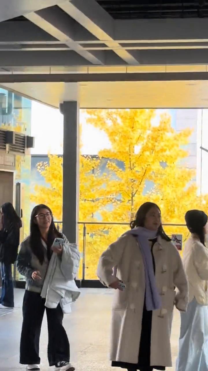 重庆园博园地铁站给大家看一下,今天是星期六,好多人,全是各种拍照的。今天是十一月二十八号还是二十九号星期六,银杏确实很黄很美。看看玻璃幕墙上的,不仅两边都有银杏,两边都有,去那边看看,那边也有,真的好多人。 今天重庆天气又很好,沙尘暴又没吹到重庆来,真的太美了,给大家看一看,真的又黄又美,这个才漂亮,玻璃幕墙真的太漂亮了,怎么有这么美的地方,就是堵车,在这里堵一下午都没所谓了。