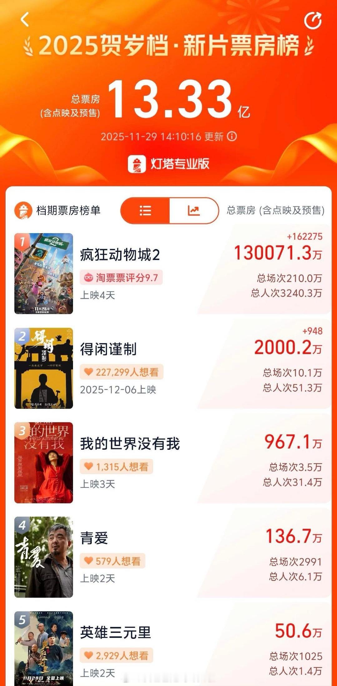 一睁眼得闲谨制预售票房1600万+了,开启预售首日票房1579.9万,当日想看新