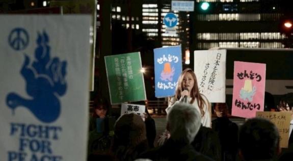 下台!日本民众破口大骂 当地时间28日晚间,日本民众在位于东京的首相官邸前再度举