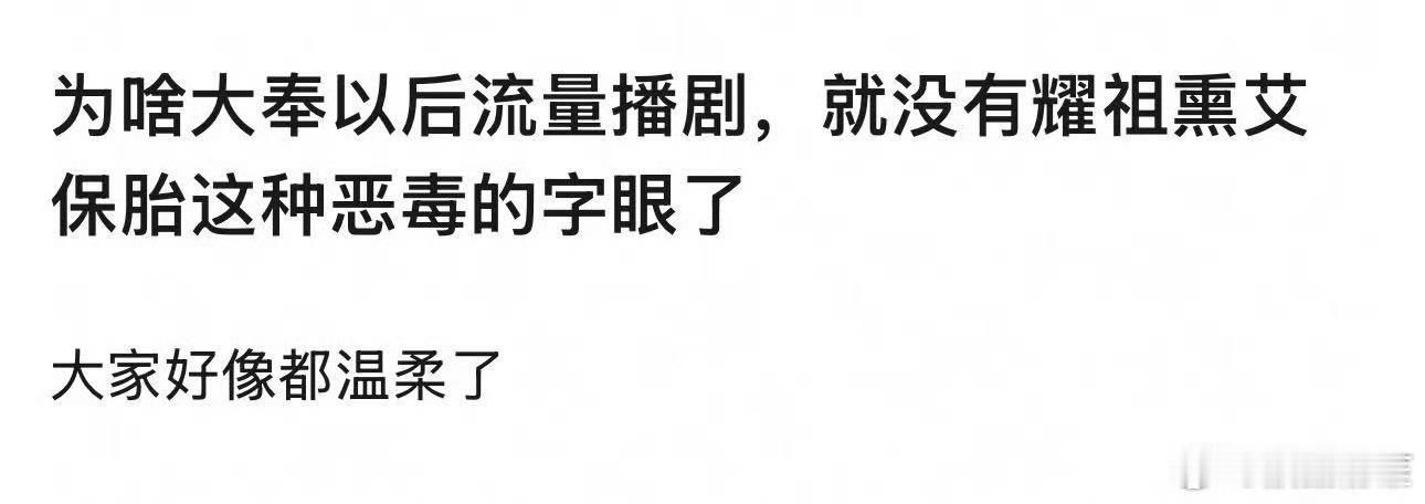 记得熏艾保胎好像不止用于形容大奉,还有别的剧也这么被这么说来着……但是大奉的成绩在今年统筹来看属于很好的,反而是下半年各种大剧播一个扑一个的时候这个词没有再用过了