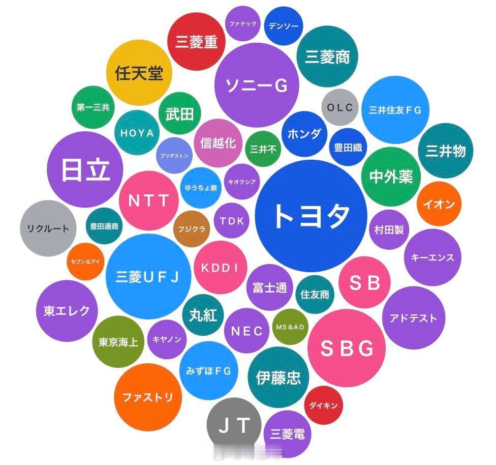 日本公司市值排名 1. 丰田汽车公司市值49.5万亿日元 2. 三菱日联银行 28.8 万亿日元 3. 索尼集团 28.1万亿日元 4. SBG 24.0万亿日元 5. 日立公司 22.8 万亿日元 6. 三井住友金融集团 18.2万亿日元 7.迅销集团 18.1万亿日元 8. 任天堂 17.2 万亿日元 9. Adtest 15.7万亿日元 10. 东京电子 15.0 万亿日元日股老常政经日本经济常涤非超话常涤非观点