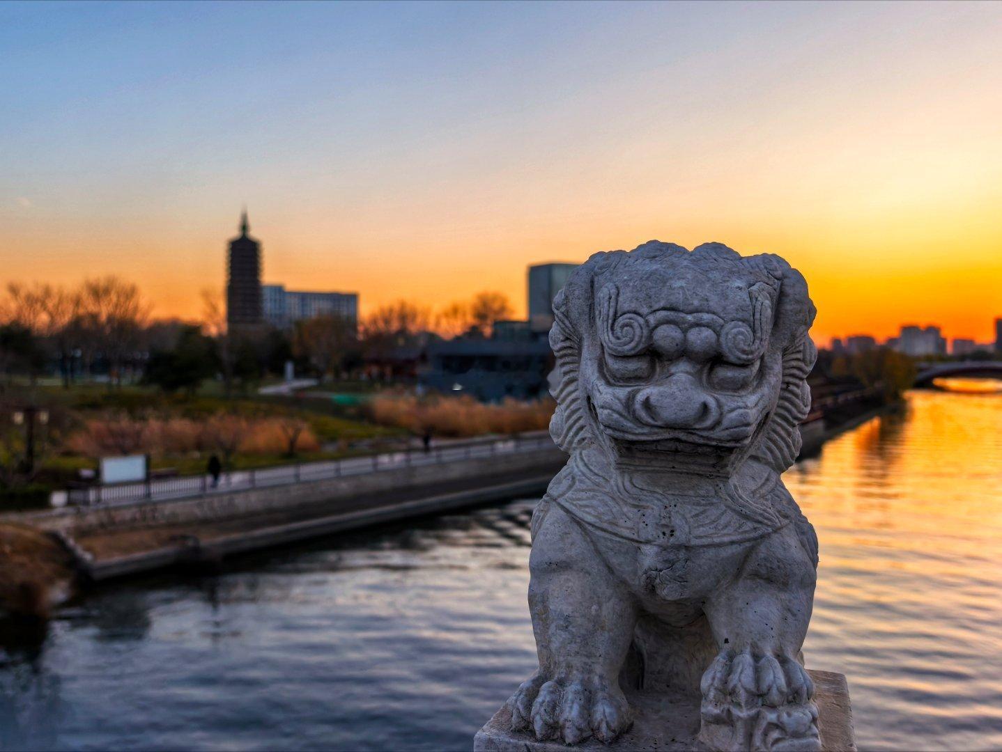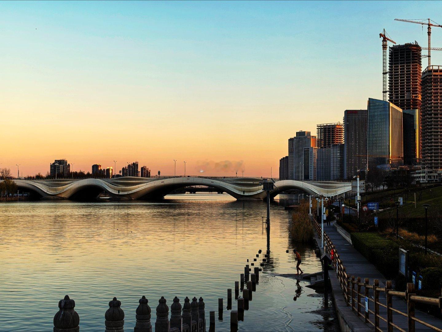冬日天坛,澄澈宁静。祈年殿金顶在暖阳下熠熠生辉,天幕上明月高悬,日月同辉,交映成