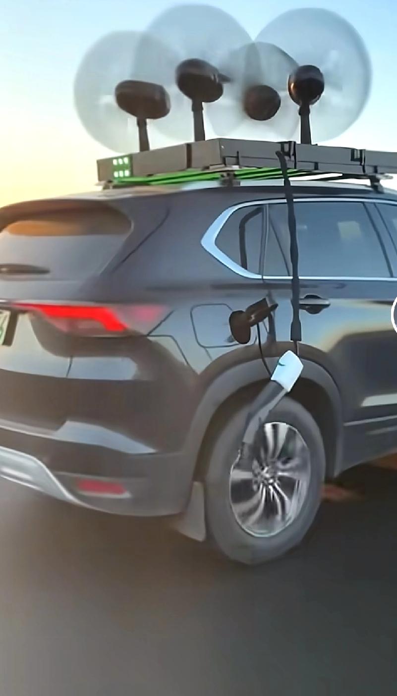 果然,高手在民间 一位在新疆自驾的朋友看到非常奇特的一幕,就是一辆电动汽车在车顶放了四个风扇,利用驾驶过程中产生的风力发电给自己的轿车充电 这样的方法简直太给力了,不知道这样的充电方式能够续航多久,有没有懂的朋友,能不能给大家解释一下? 风力汽车原理 车载充电风扇 车顶风扇 露营车载风扇 车用双头风扇 车载大功率风扇 电车上吹风