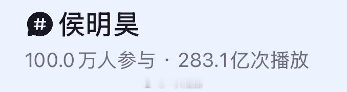侯明昊个人抖🎶话题参与人数破100万,播放量破283亿🔥🔥🔥