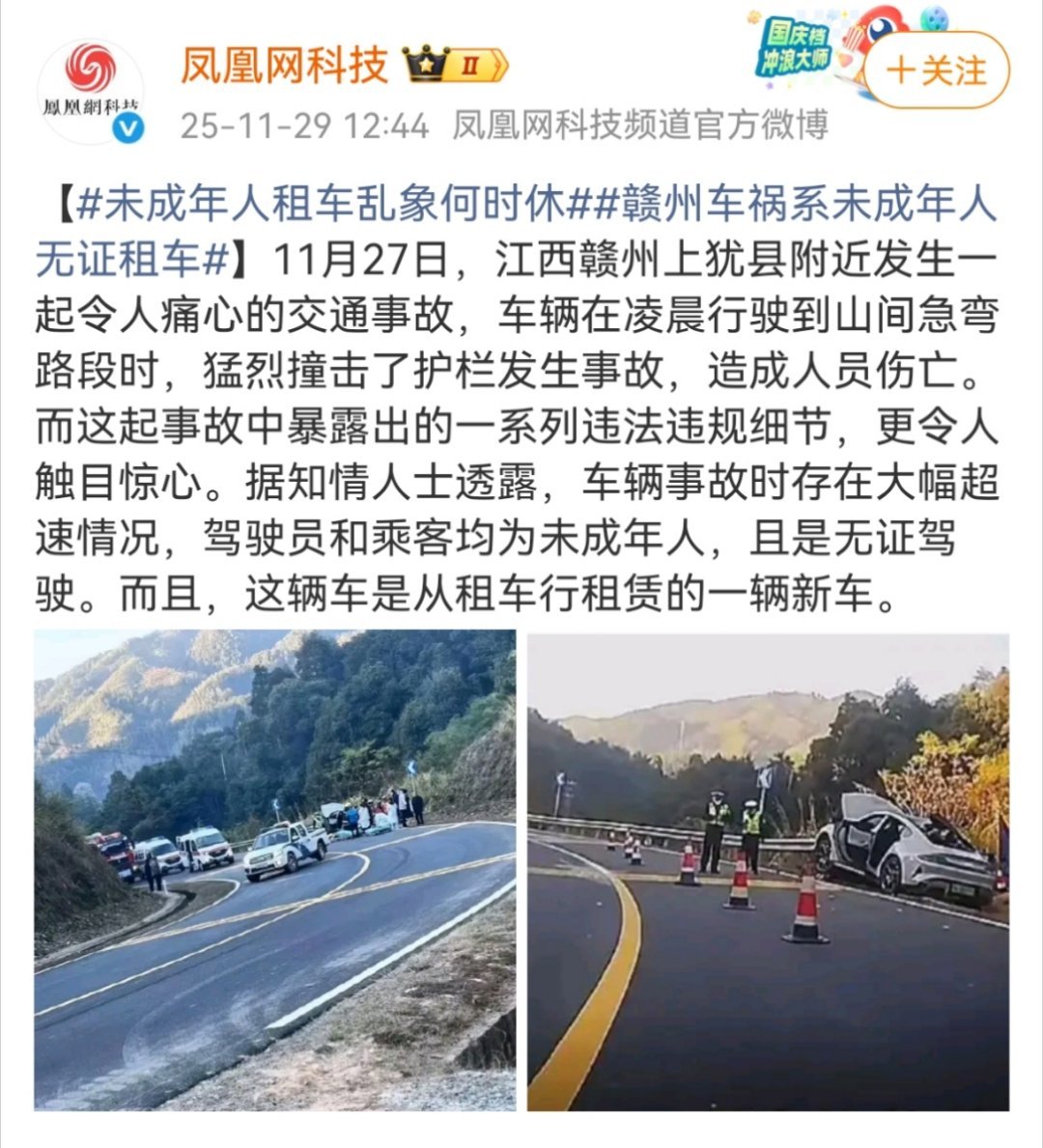 未成年人租车乱象何时休租车行业也是挺敢啊,未成年人,没驾照就把车租出去了……那租车公司说啥也跑不掉了新手开车,最大的问题是遇到问题不知道怎么处理。像我这种怂的就是慢腾腾开又怕耽误人家。有点就属于不知道天高地厚油门踩到底了。所以哪怕拿到驾照,也得一年以后或者有老司机陪同才能上高速。而且我第一次上高速真的是心惊胆战。虽然慢慢克服了,那也是因为回河南距离太长的原因。到现在我高速一般踩着110开,并且和前车保持足够距离。因为高速你不知道什么时候就有作死乌龟车,或者突然左转不打灯的追命车。你让没驾照的孩子踩着油门上高速,这不是等着出事呢么……毕竟生命不能重来,安全不能侥幸啊。一辆几吨的钢铁巨兽,操作不当会出大问题的。