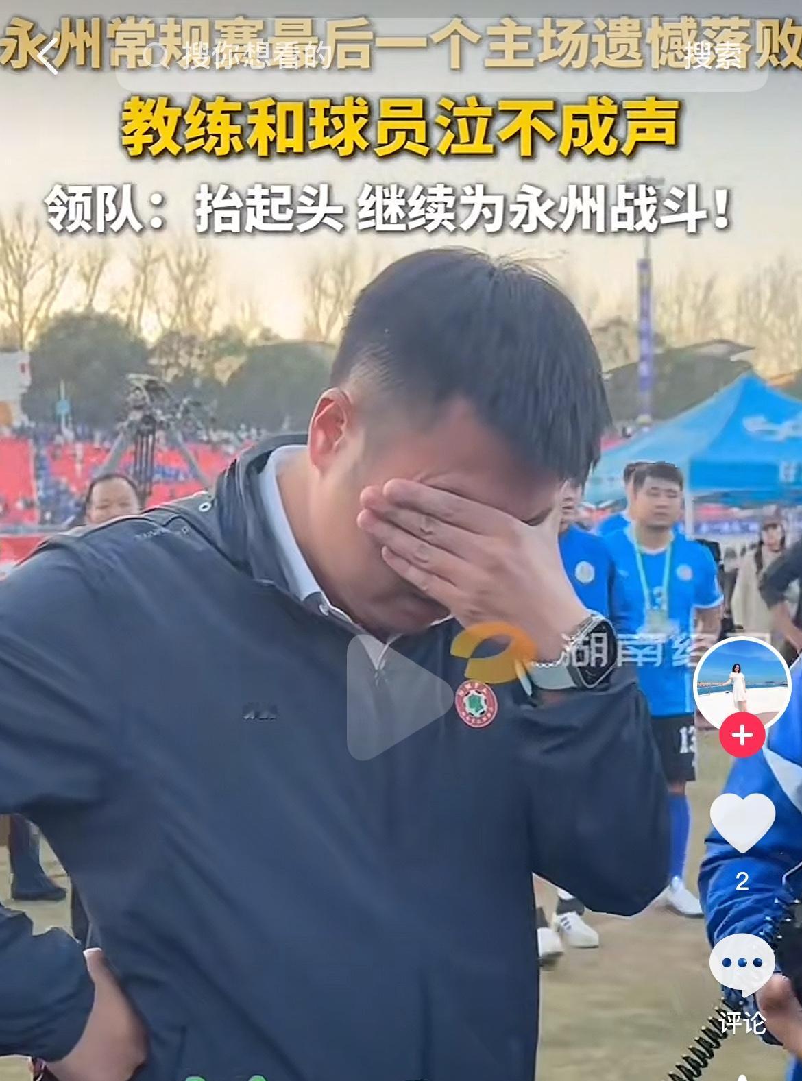 男人哭吧哭吧不是罪,再强的人也有权利去疲惫。 黄楚儒教练哭了,一个爱开玩笑、喜欢幽默、被人戏称大忽悠的大男人哭了,哭得连赛后跟球迷喊话都进行不下去。 跟湘西踢进3球全部取消他没哭,被娄底攻破不败之身他没哭,今天在家门口,在父老乡亲面前,在常规赛最后一个主场输球了,他实在撑不住了,有委屈,有不甘,有难舍…… 这支从开始不被看好的鱼腩,到逐渐被认可的黑马,到技战术成型的强队,黄教练用系统的战术、临场的指挥、军人的顽强把永州队打造成一支团结拼搏、积极进取、永不放弃、受人敬重瞩目的网红球队,接下来客场对阵株洲,无论输赢,他已经完美走完了永州队的常规赛,这个永州的英雄,值得为自己痛哭一回。