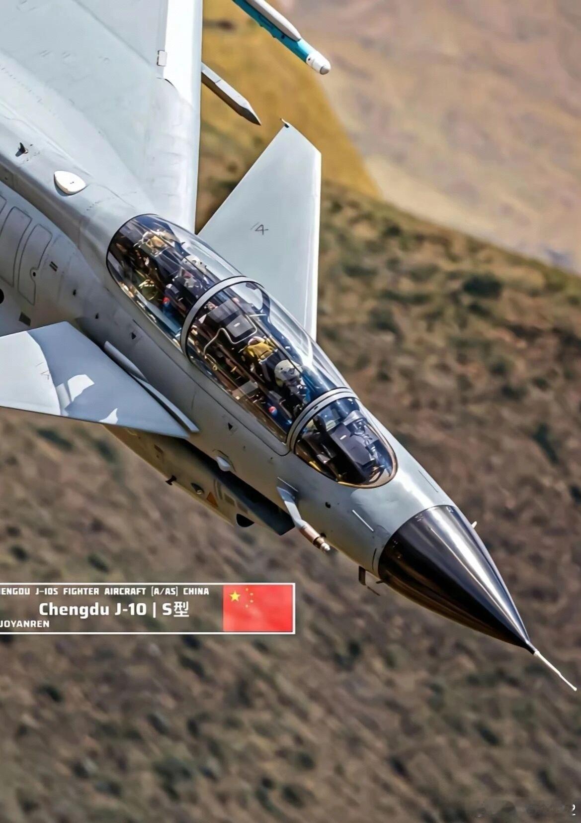 国产战斗机座舱视野最好的机型,也是气泡弧线最饱满的座舱盖,就是歼-10S双座战斗/教练机。相比歼-16系列的座舱,10S的座舱盖两边弧线最宽处的位置,是在座舱边缘有相当距离处,从巴依老爷的视频和照片中,可以看出飞行员可以探头到舱盖边缘,向下方观察地面,可见这个外凸有多少。