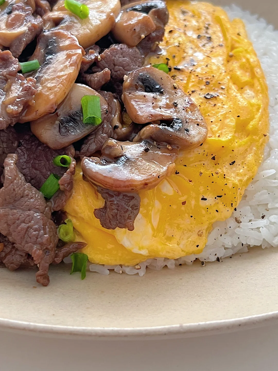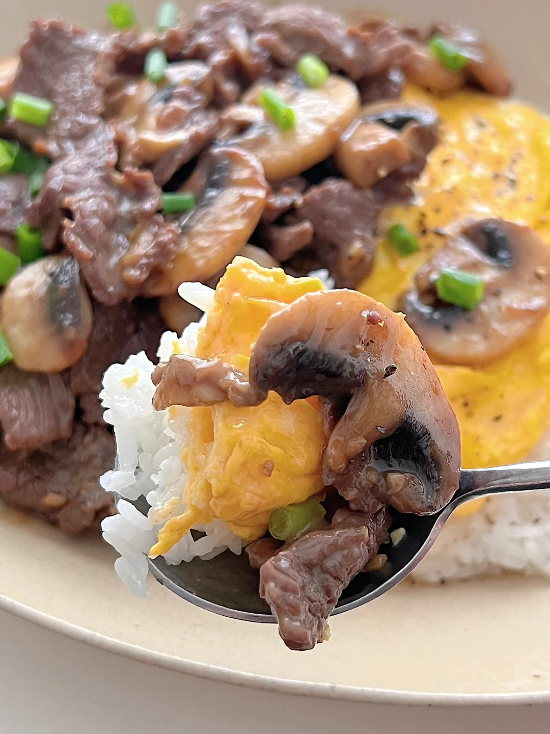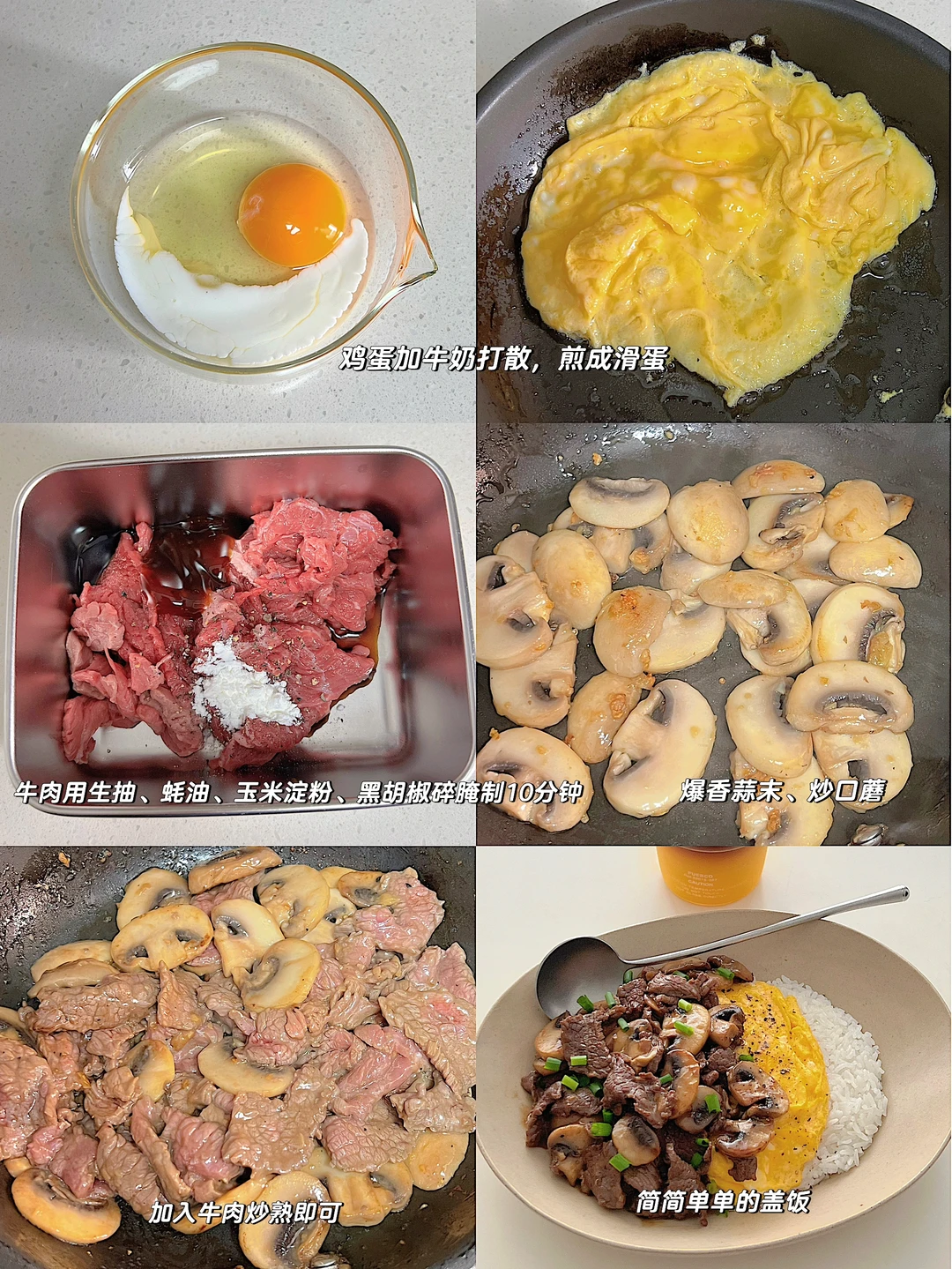 一人干净饮食|牛肉口蘑滑蛋盖饭🍱