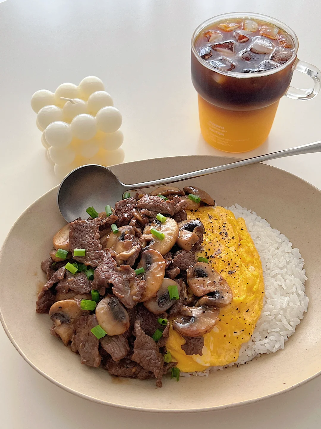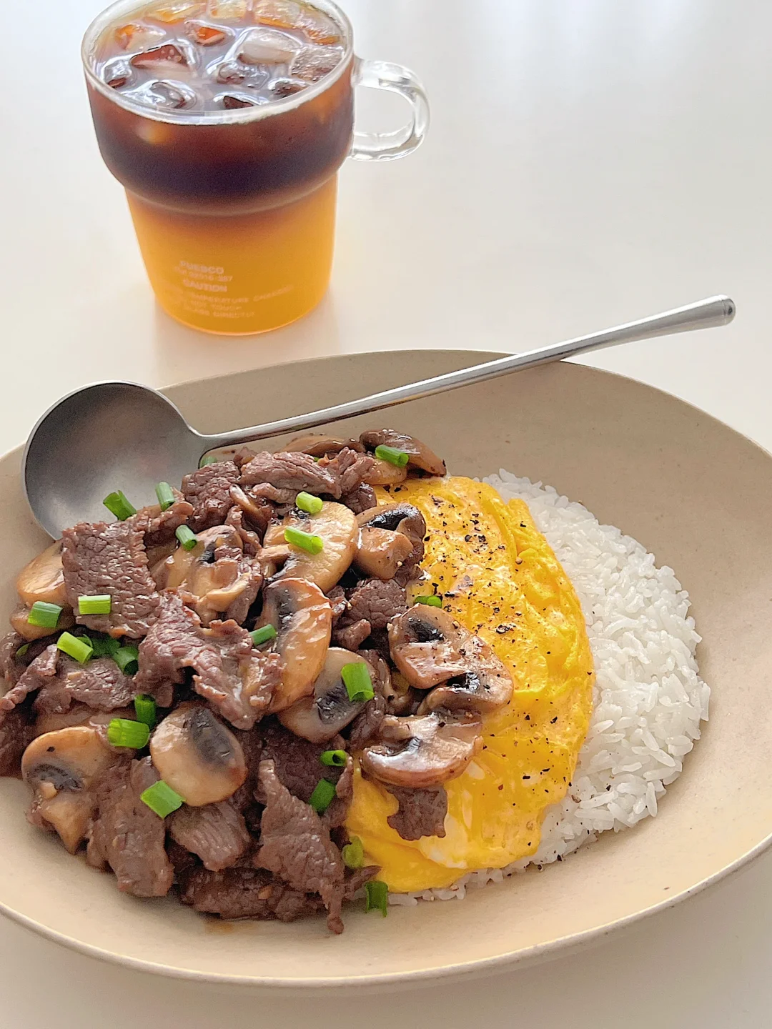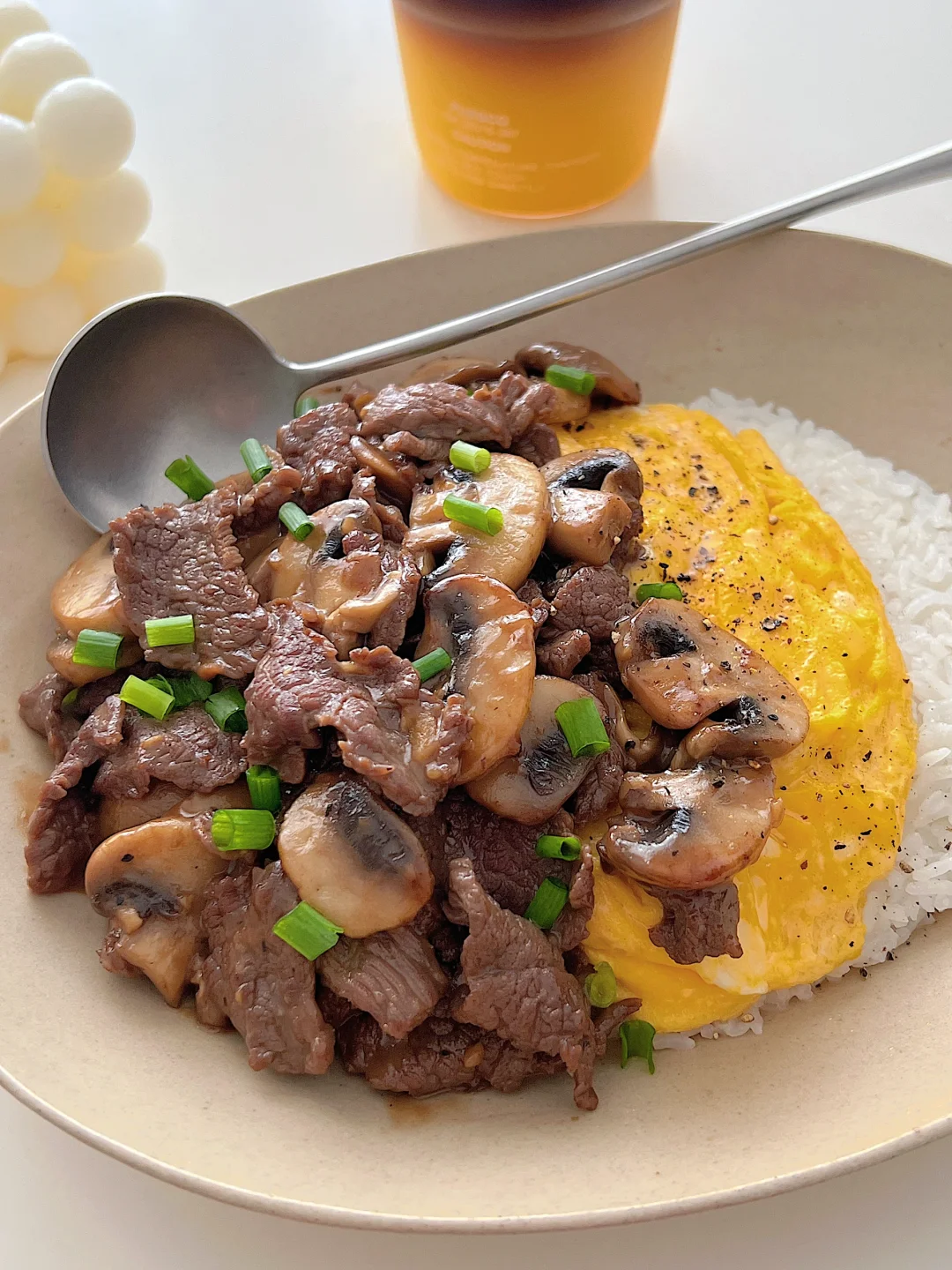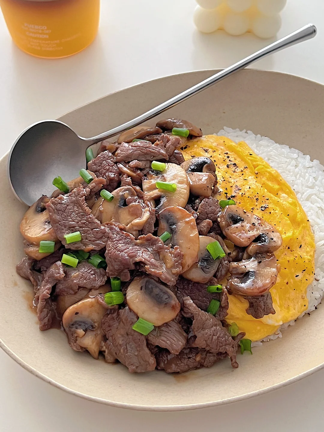 一人干净饮食|牛肉口蘑滑蛋盖饭🍱