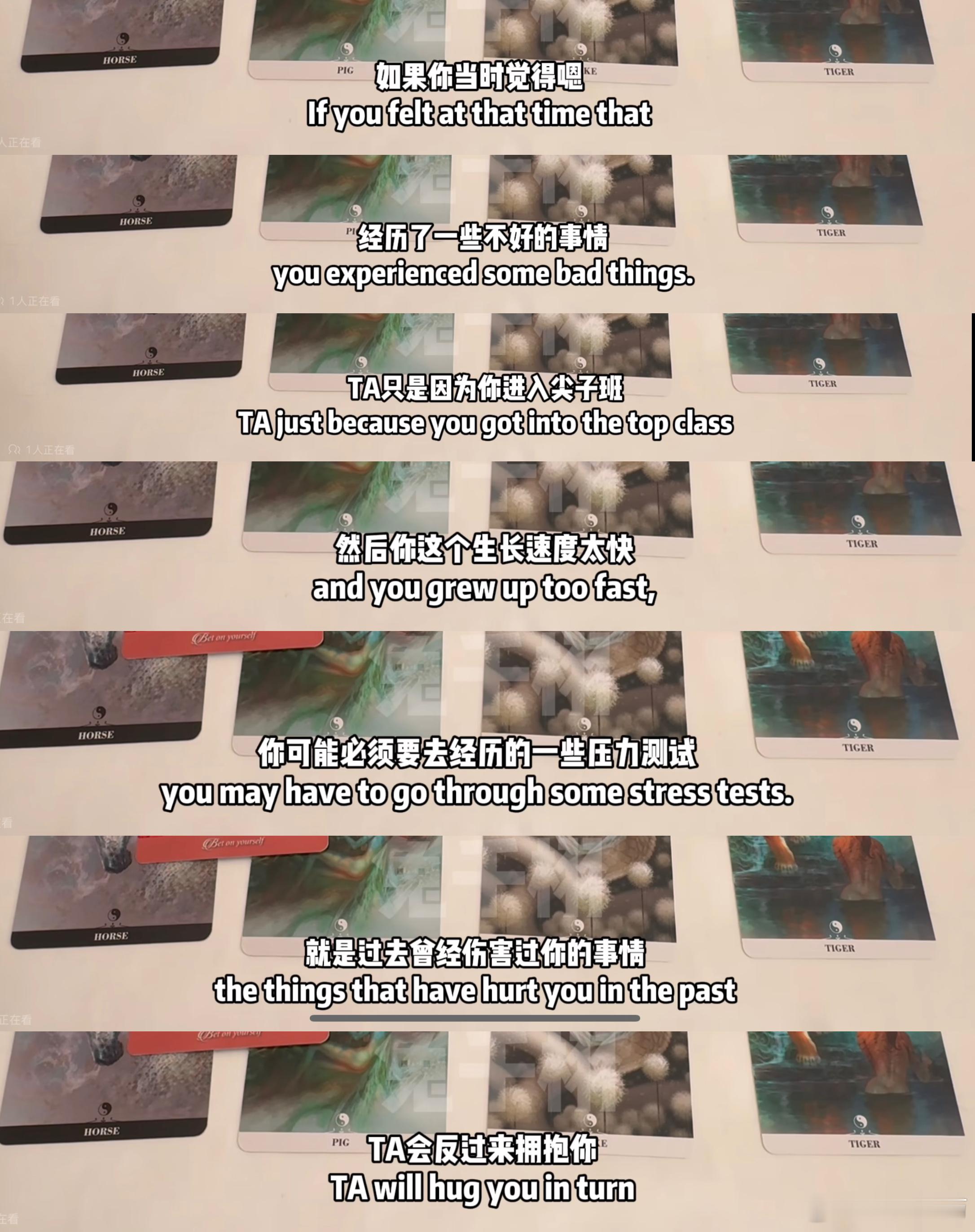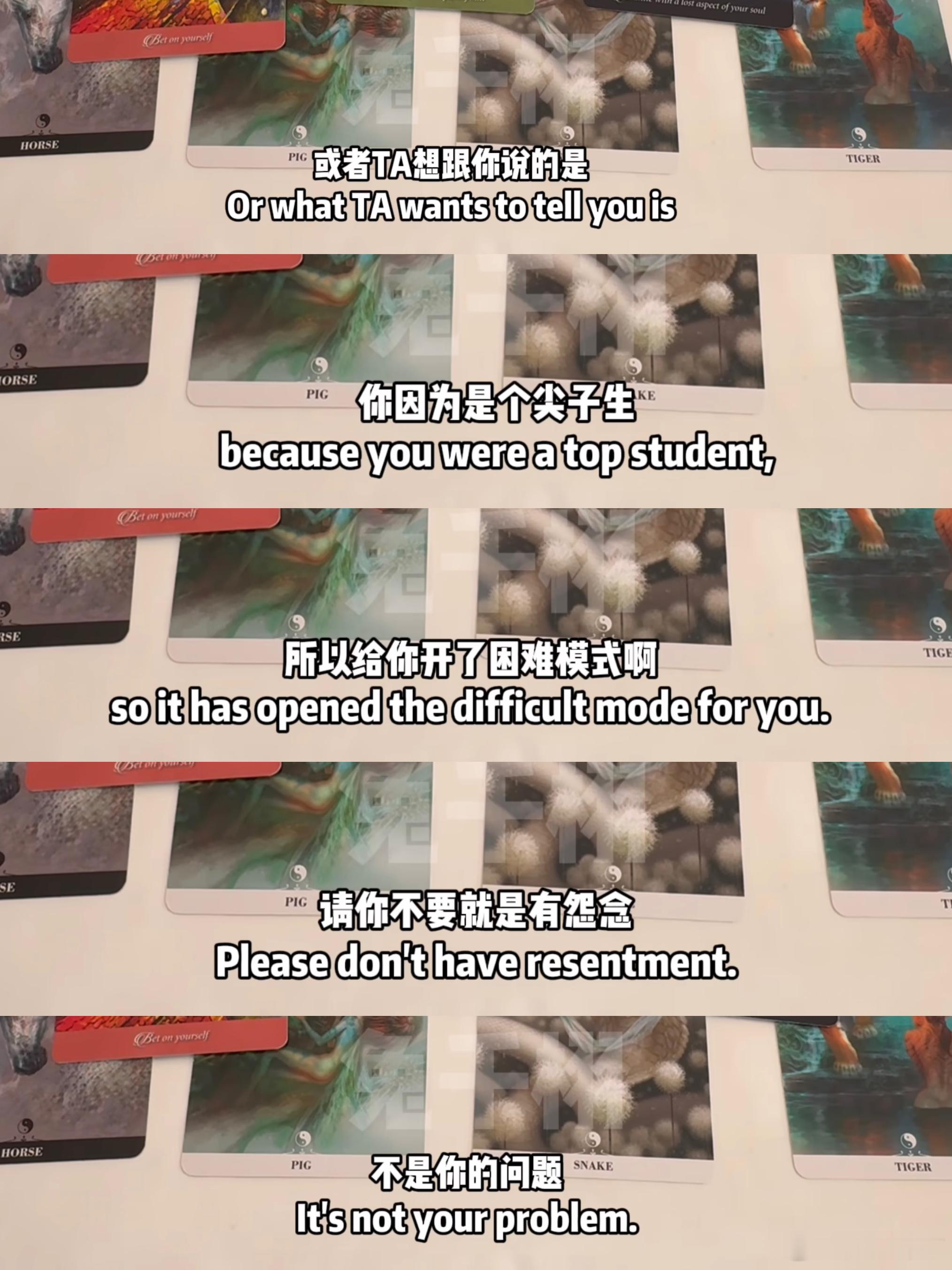 前些天因为某些事情崩溃大哭,一直在想,为什么要让我这么辛苦,某些事情 我要用尽全力才能得到别人毫不费力就能得到的。今天偶然点进这期塔罗视频,抽牌的时候就有预感是一张命运之轮,但真的把牌面放到我眼前时仍旧深感震撼。它说:“命运确实有对不起我的地方,不要有怨念。”听到这句话 眼泪一下子就出来了,我不知道要用什么言语去表达当时的心情,冥冥之中有人给了我回应。宇宙,原来你真的听见了我的声音。