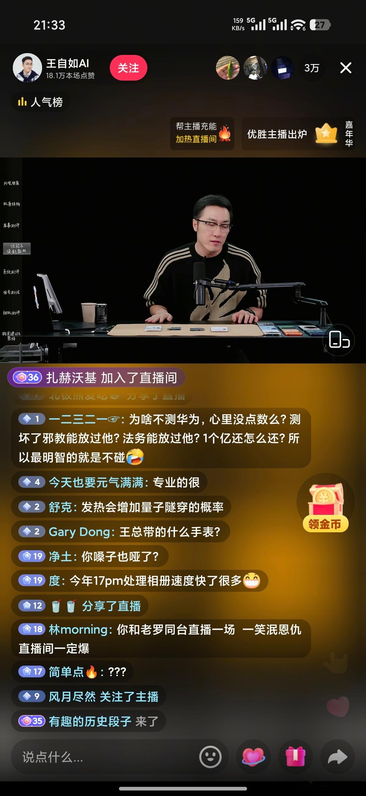 王自如阔别机圈多年,归来仍是顶流,直播+评测的风格,三万人同时在线。说实话,数码圈在王自如离开的这些年里,几乎没啥进步,所有模式还是当年王自如摸索出来的,这就是为啥我之前做了两年数码评测自媒体之后,毅然离开数码评测这个行业,因为这个行业太模板化了,主播念稿+厂商广告,而且内容也没啥新意,想要活的潇洒必须跟厂商搞好关系,内容质量根本就不重要。王自如这次把直播和评测结合起来,全程脱稿,虽然讲的也是那些常规的外观、性能、屏幕等几大板块,但讲的很多东西都延伸了题外话,确实比主流广告评测看得有价值一些。数码科技评论