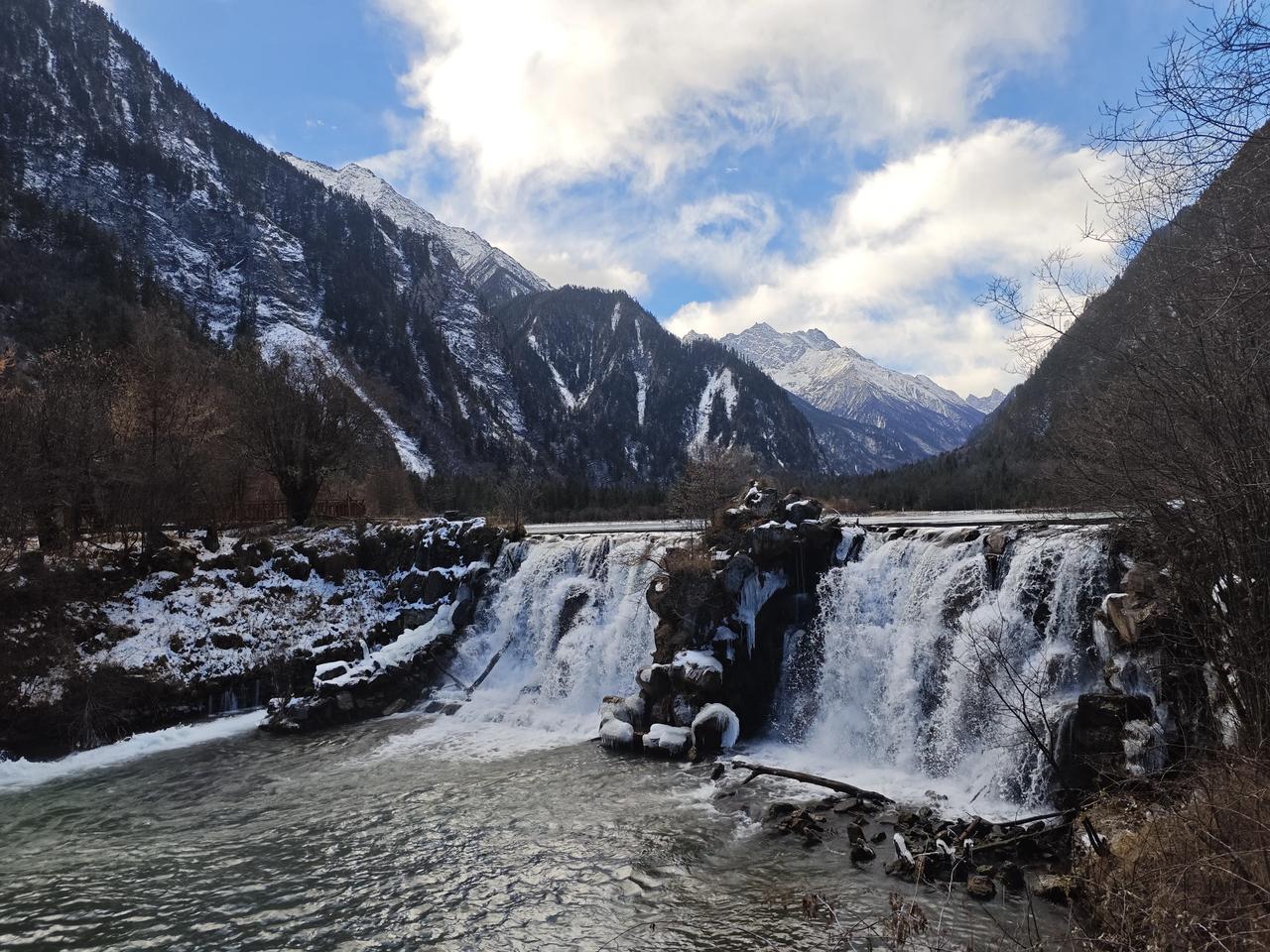 冬天的毕棚沟,果然还是别有一番风景! 上一次,还是两年前来的,当时还是九月份,正是阳光和煦,湖面波光粼粼的时候。 这一次,是在十一月底来的,已经是湖面结冰,有的地方甚至可以滑冰滑起来,但要注意安全,整个毕棚沟是一片银装素裹,分外妖娆。 上次从上海子出发,徒步到磐羊湖,就感觉走不动了,最后坐电瓶车上的顶。这次就继续徒步走磐羊湖到燕子岩,用时一个小时左右,既欣赏了风景,又锻炼了身体。 毕棚沟