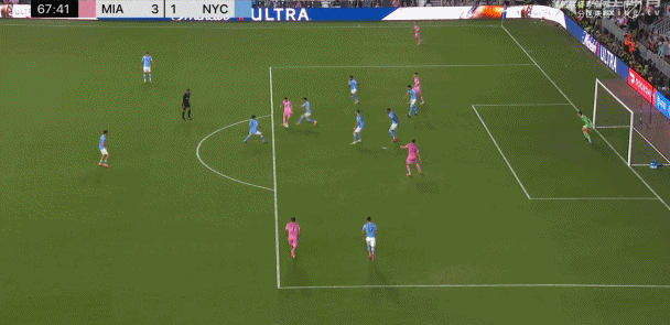 梅西吸引防守球员注意力后助攻马特奥破门!!!3比1!!!迈阿密国际3比1纽约城迈阿密国际vs纽约城