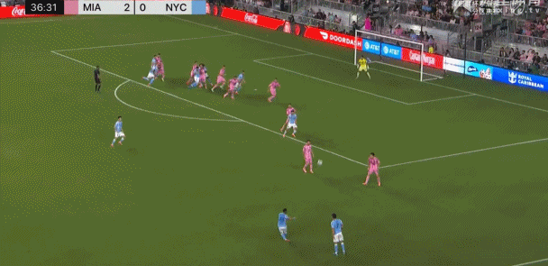 纽约城利用定位球机会头球扳回一球,看起来是马特奥落在了最后导致没有造越位成功,目前迈阿密国际2比1纽约城迈阿密国际vs纽约城