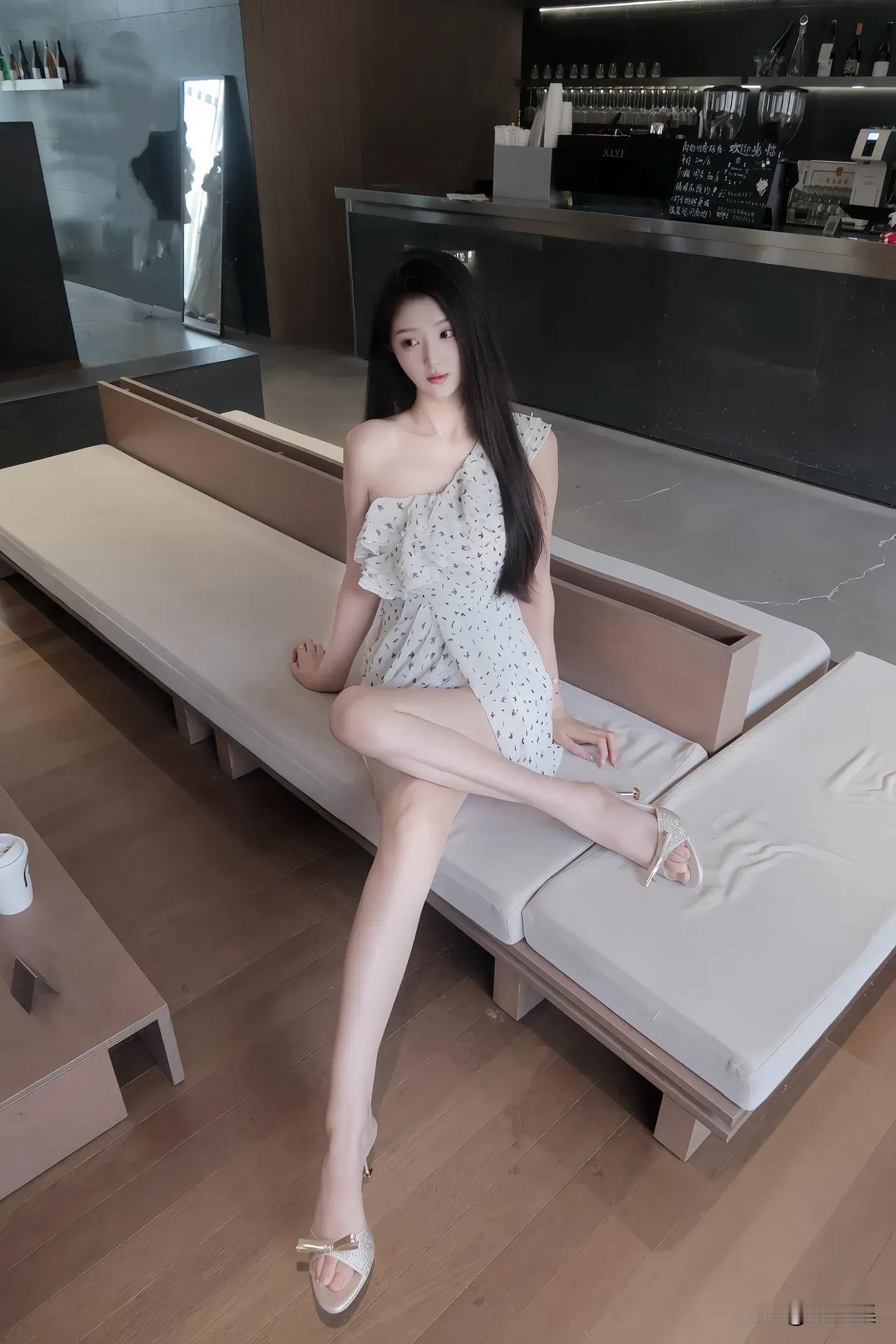 优雅气质少女,坐在现代简约风格的咖啡馆里,散发着温柔与自信。