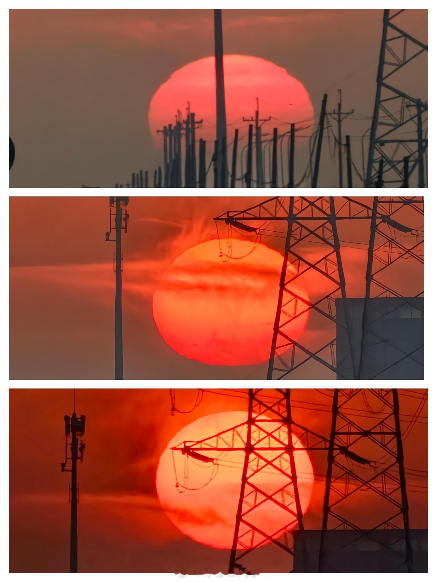 也不管冷不冷了,早上去看日出了,今天的太阳火气有点大,像个火球,还围着一层云,像一颗星球🪐,南北方同步开启干冷模式
