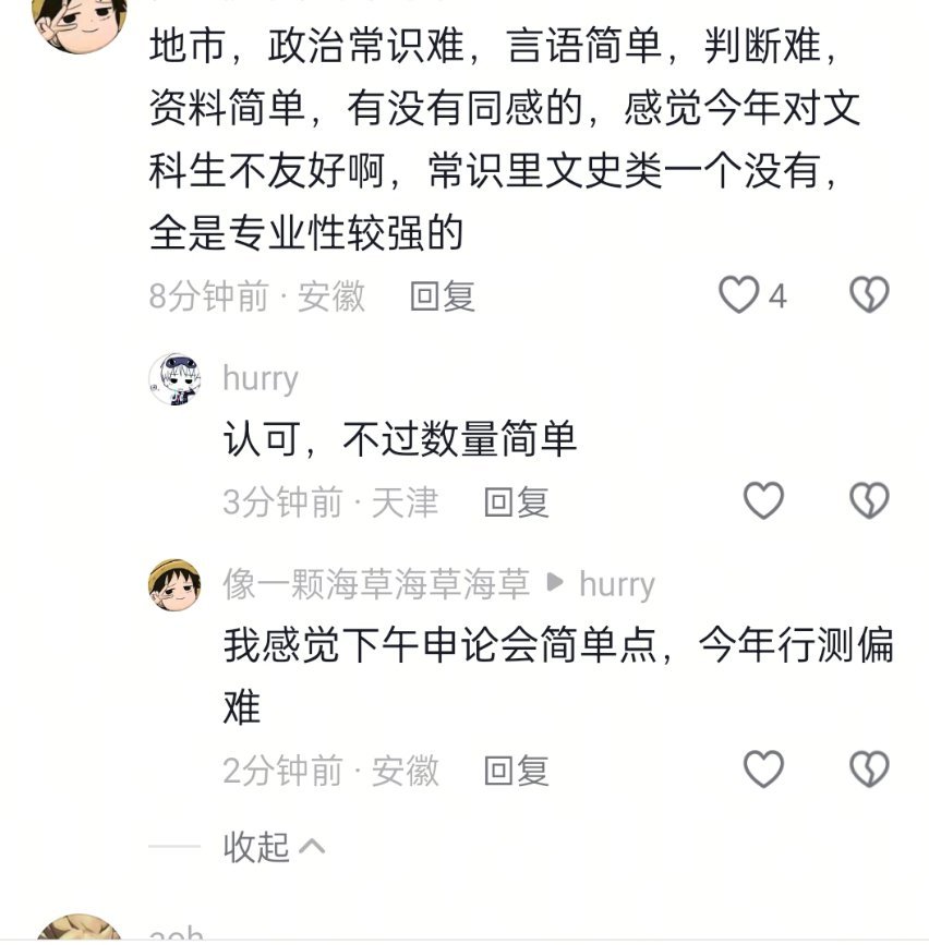 国考 没经历过,,考过的都来说说啥感受国考行测上午已经考完了,今年的题目难不难?大家都做完了没