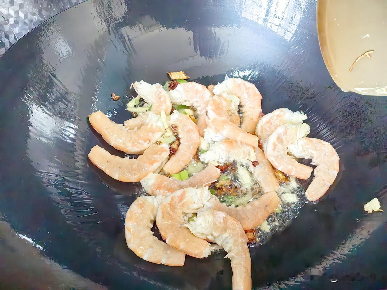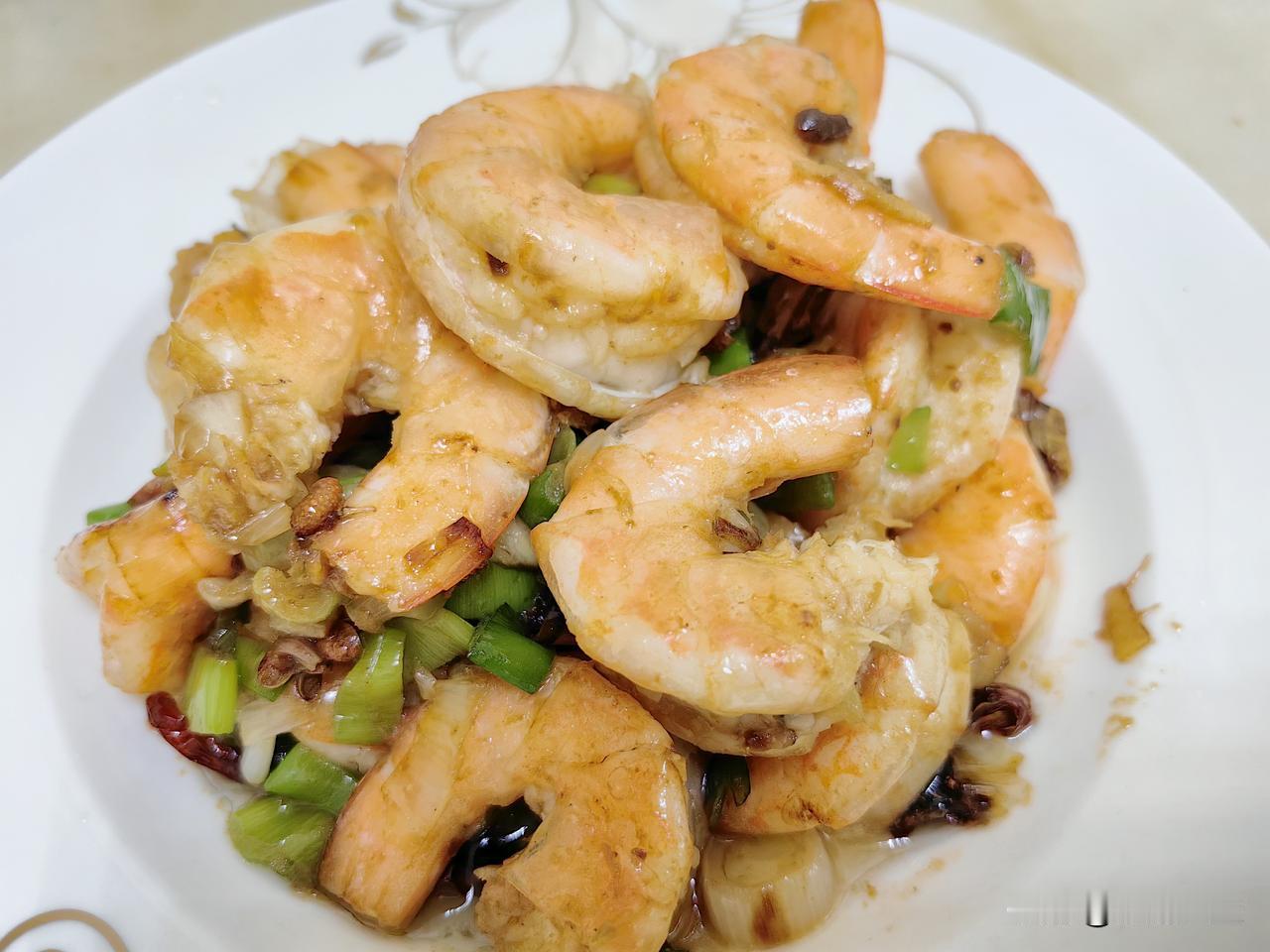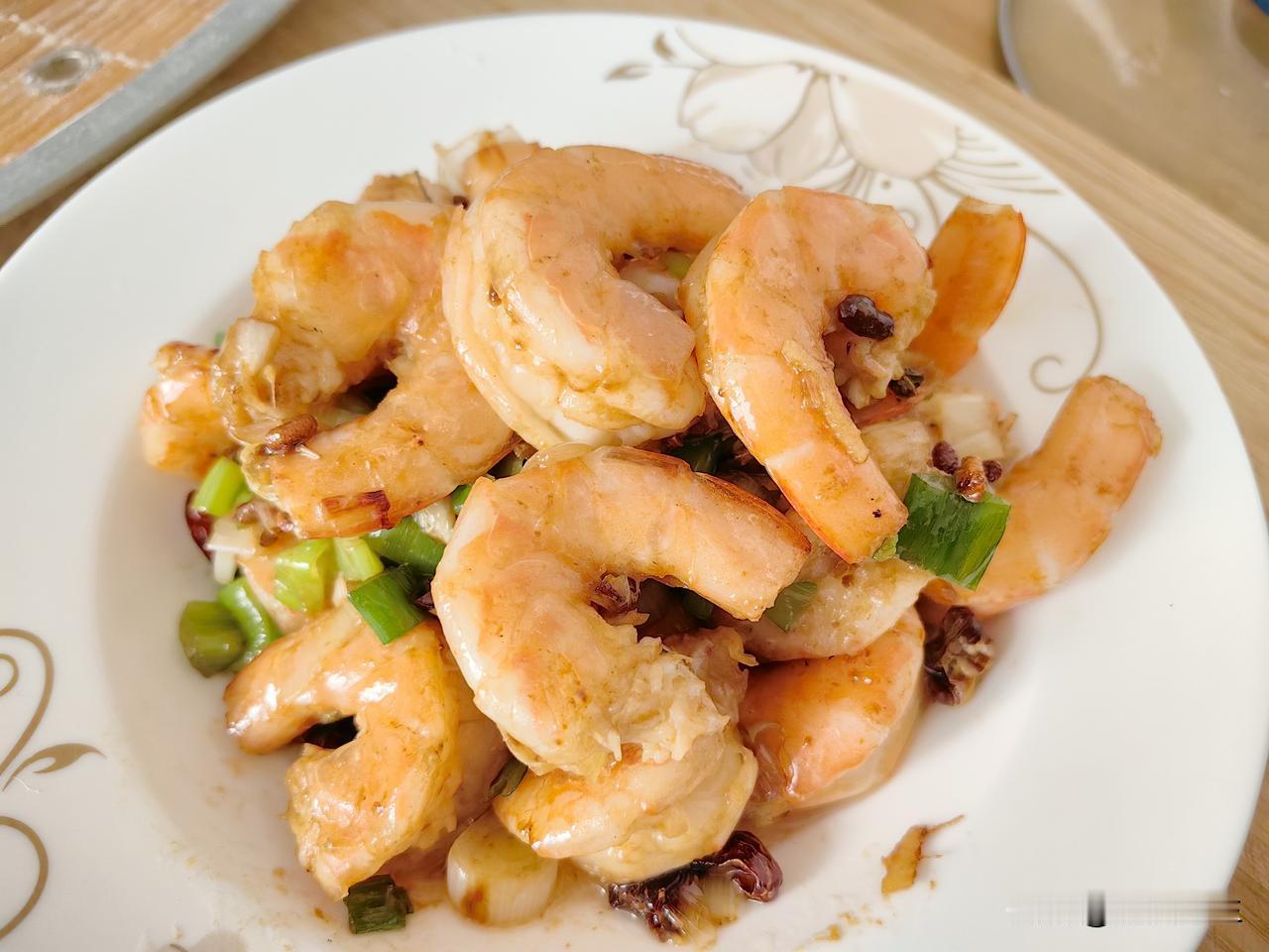 今天葱爆河虾,味道杠杠滴! 一,河虾去掉虾线,头,脚,清洗干净,用剪刀将虾背剪开。 二,切一个山东大葱,寿光老姜,韩城大红袍花椒30粒,渭南大蒜五瓣去皮切片。 三,起锅烧油,油三成热倒葱姜蒜小火爆香后倒入洗净河虾翻炒。 四,放入黄豆酱,耗油,盐,生抽少许,翻坢出锅盛盘。 大家看看色、香、味怎么样?