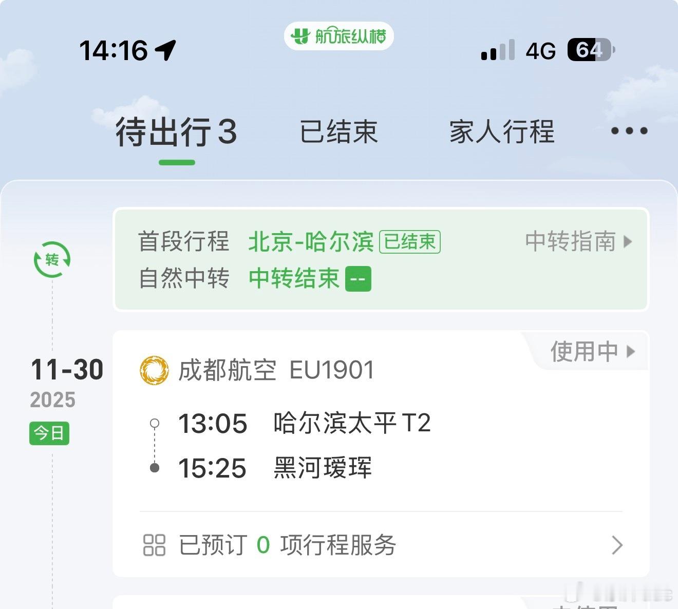 早上四点多出门赶飞机,现在还没到,我们都知道要在吗哈尔滨中转,但是真不知道中间还要再停一次 五大连池·五大连池德都机场