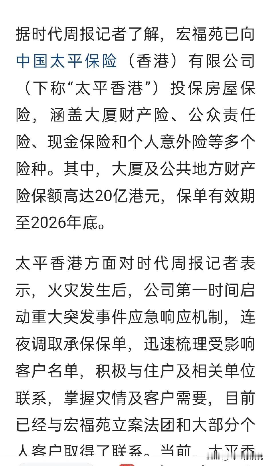 不知道在香港,保险公司会不会找理由这也不赔那也不赔 网上传言香港的火灾,业主们有投保,是太平(香港)保险公司承保,如今面临20亿的赔付 在生活中常见出事之后,如果保险公司发现承保一方有违法犯罪的行为,就会依据保险的有关法规,这也不赔,那也不赔 而这一次香港火灾,承保方如果发现施工方有违规施工而导致火灾发生的依据,会不会和内地一样,这也不赔,那也不赔呢 毕竟,20多亿的赔付,很有可能会让这一家保险公司伤筋动骨 当然也可能人家那边出了事,保险公司是这也要赔,那也要赔,和我们这边不一样 当然,按说保险公司出了事应该先赔付才对 如果发现有问题,应该在代位赔付之后告对方才对 而这也不赔,那也不赔,往往会让保险公司的业务发展越来越困难