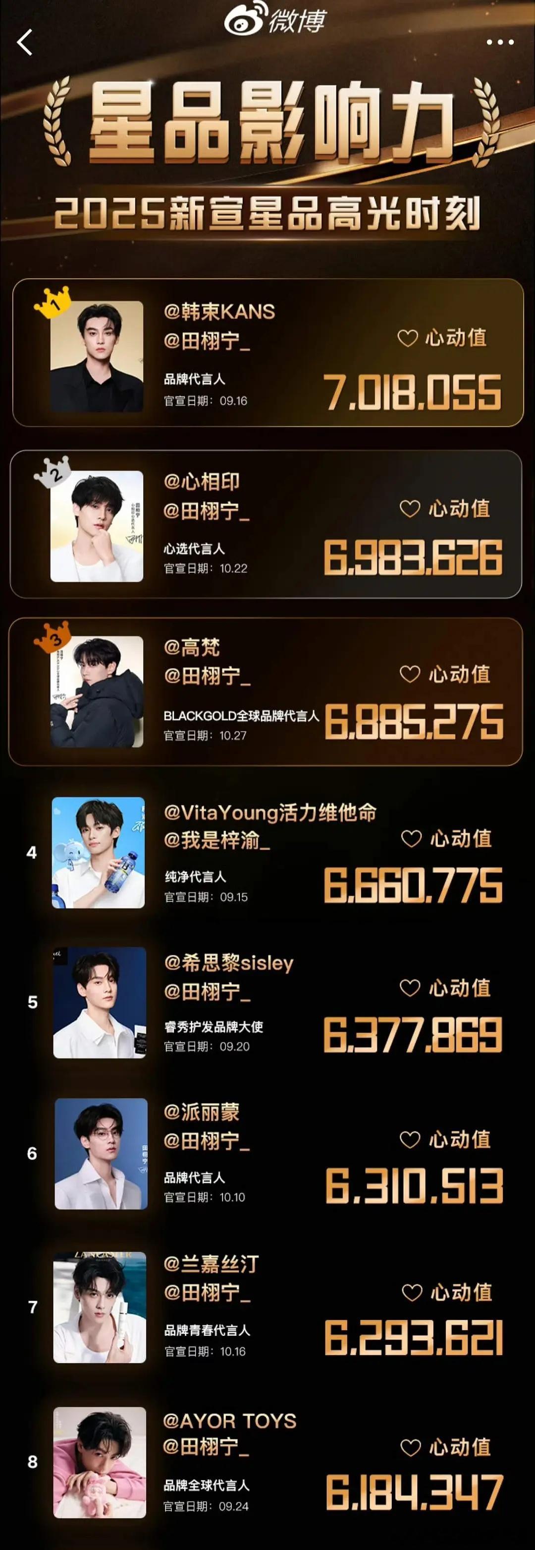 2025年只有田栩宁宣代言了吗?怎么榜单上全是他尼🤔